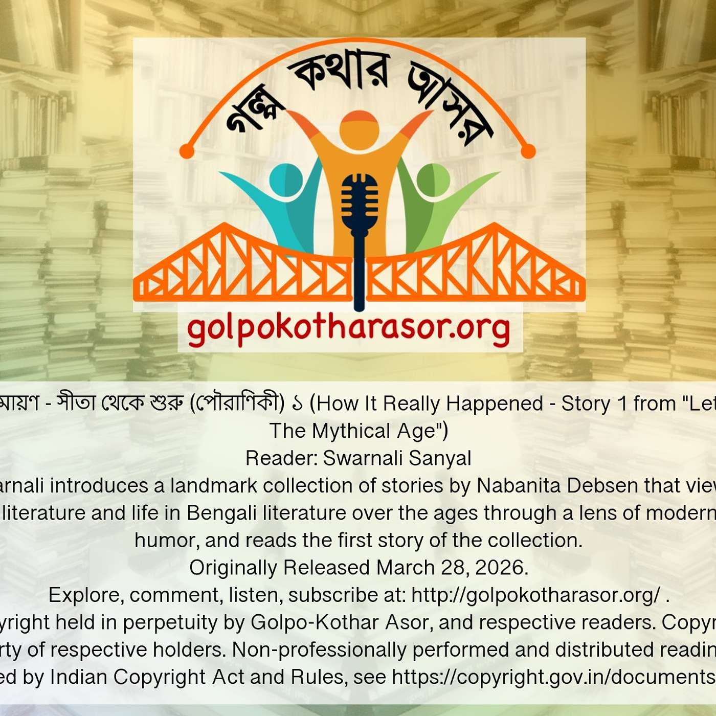 © All episodes copyright held in perpetuity by Golpo-Kothar Asor, and respective readers. Copyright of source texts remain the property of respective holders. Non-professionally performed and distributed readings of copyrighted material permitted by Indian Copyright Act and Rules, see https://copyright.gov.in/documents/handbook.html