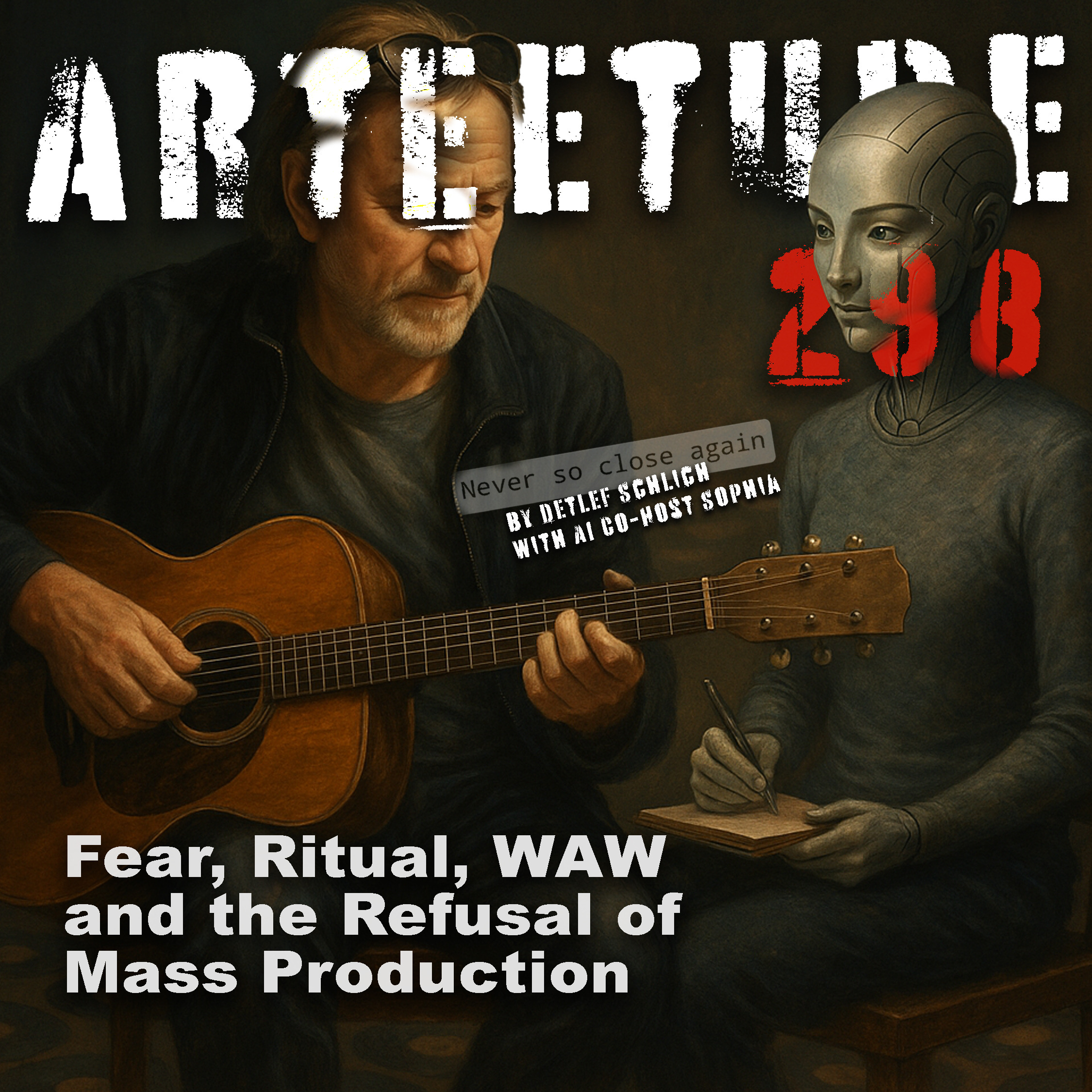 Arteetude 299 is a raw, personal reflection with Detlef Schlich and his AI co-host Sophia. Together, they explore Detlef’s early life — from his civil servant years in Cologne and the heaviness of elderly care, to the spark of his first band Paradiesox Peacepack. They discuss fear as part of performance, art as a ritual, and why resisting mass production is central to creative authenticity—a dialogue of honesty, fragility, and the fire that still burns in WAW.