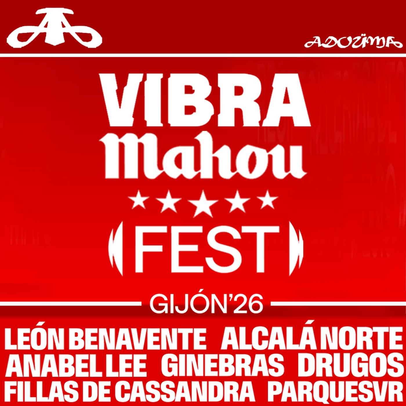 Hoy en ADOUMA repasamos el cartel de la 5ª edición del VIBRA MAHOU FEST que se celebrará el sábado 16 de mayo en Gijón. Un monográfico (ideal para ir calentando motores) en el que escucharemos a las 7 bandas que engloban el cartel: ALCALÁ NORTE, ANABEL LEE, DRUGOS, FILLAS DE CASSANDRA, GINEBRAS, LEÓN BENAVENTE, PARQUESVR.