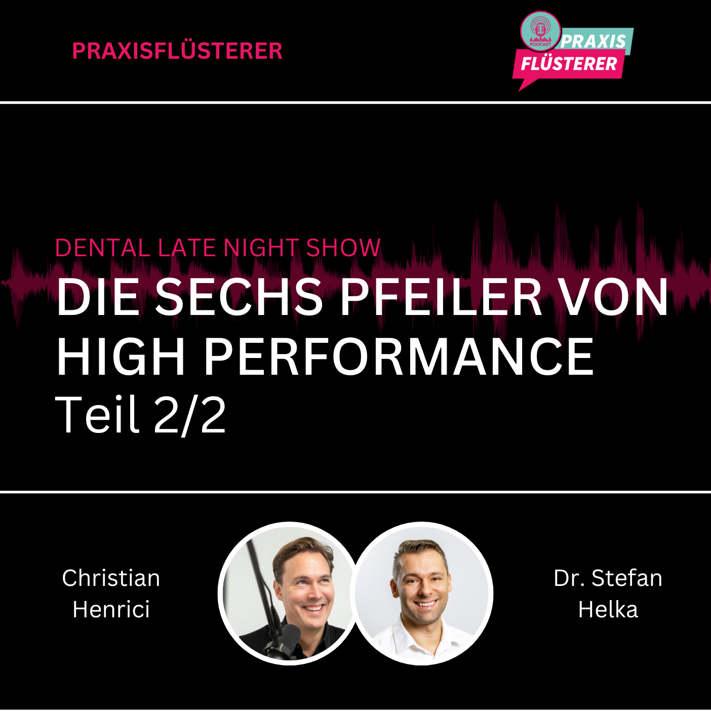 In dieser Episode, einer Aufzeichnung der Dental Late Night Show, widmen sich Christian Henrici und Dr. Stefan Helka diesmal wieder den sechs Pfeilern von High Performance – mit einem besonderen Fokus auf die Säulen „Beziehung, Netzwerk & Umfeld“ sowie „General Habits & Skills“.
