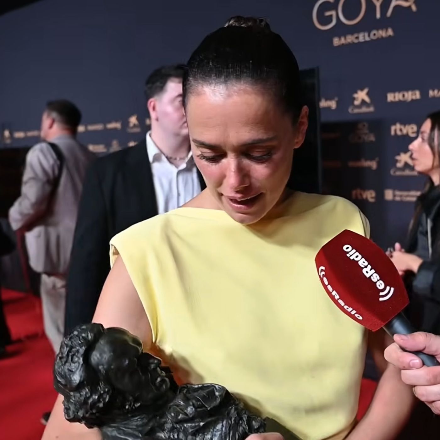 Sergio Pérez entrevista tras la gala de los Goya a la ganadora de Mejor Actriz por Los Domingos que acunaba el premio.