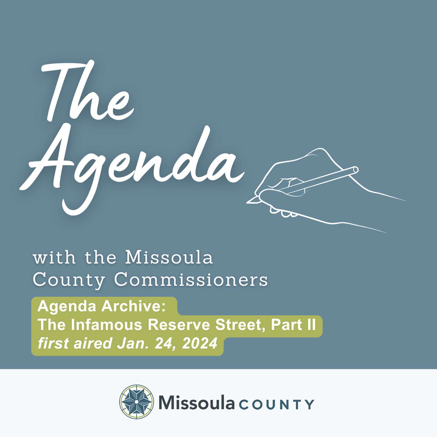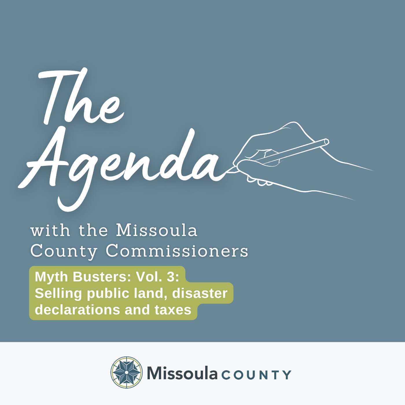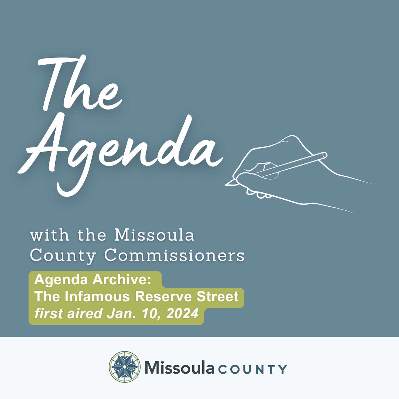 The Missoula County commissioners host the "The Agenda" podcast, which aims to help county residents better understand how local government works and how it affects their lives. In each episode, the commissioners sit down with fellow staff, elected officials and community partners to discuss public sector projects and trending topics.The Communications Division at Missoula County produces "The Agenda" with support from Missoula Community Access Television (MCAT). If you have something you’d like to add to the conversation, email communications@missoulacounty.us.