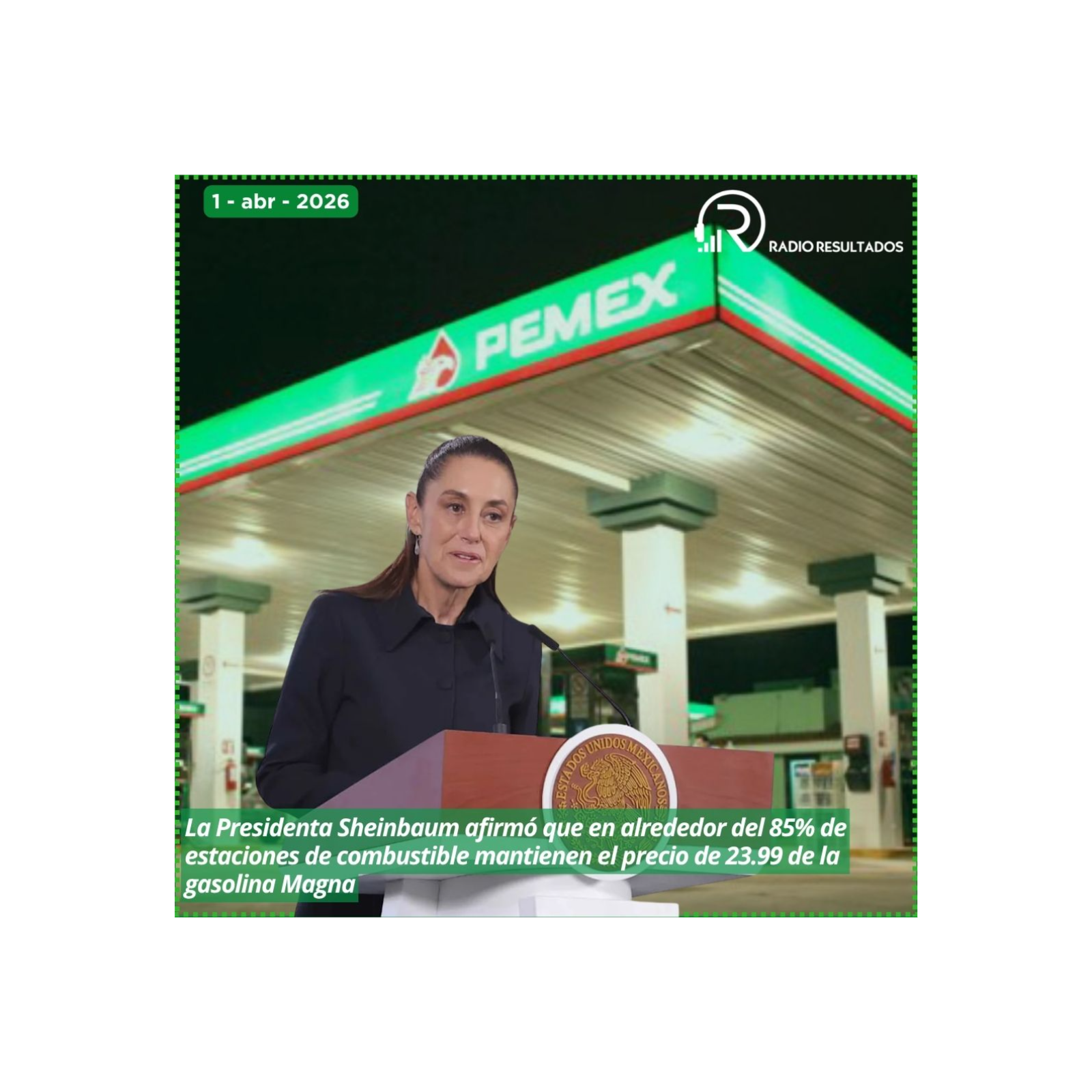 La Presidenta Sheinbaum afirmó que en alrededor del 85 por ciento de estaciones de combustible mantienen el precio de 23.99 de la gasolina Magna.Perfiles cercanos a Taddei buscan consejerías del INE.Plantea el PAN posible revocación de mandato en la capital, por resultados de la inauguración del Mundial.