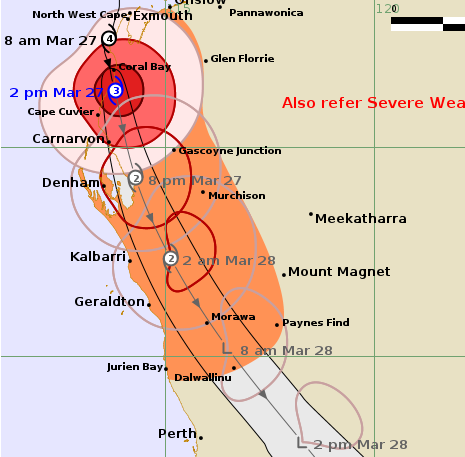 Full fury of Cyclone Narelle hits Exmouth as heavy rain heads south over next 48 hours
