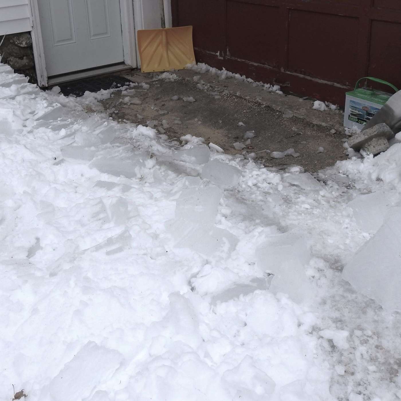 With all the ice and snow that has accumulated on roofs and trees it is very important to keep watch for hazards from above, demonstrated by the large ice chunks by our front door. Had we been standing under them, they could have caused serious injury. It is a good idea to keep heads up in life for any type of decision making.