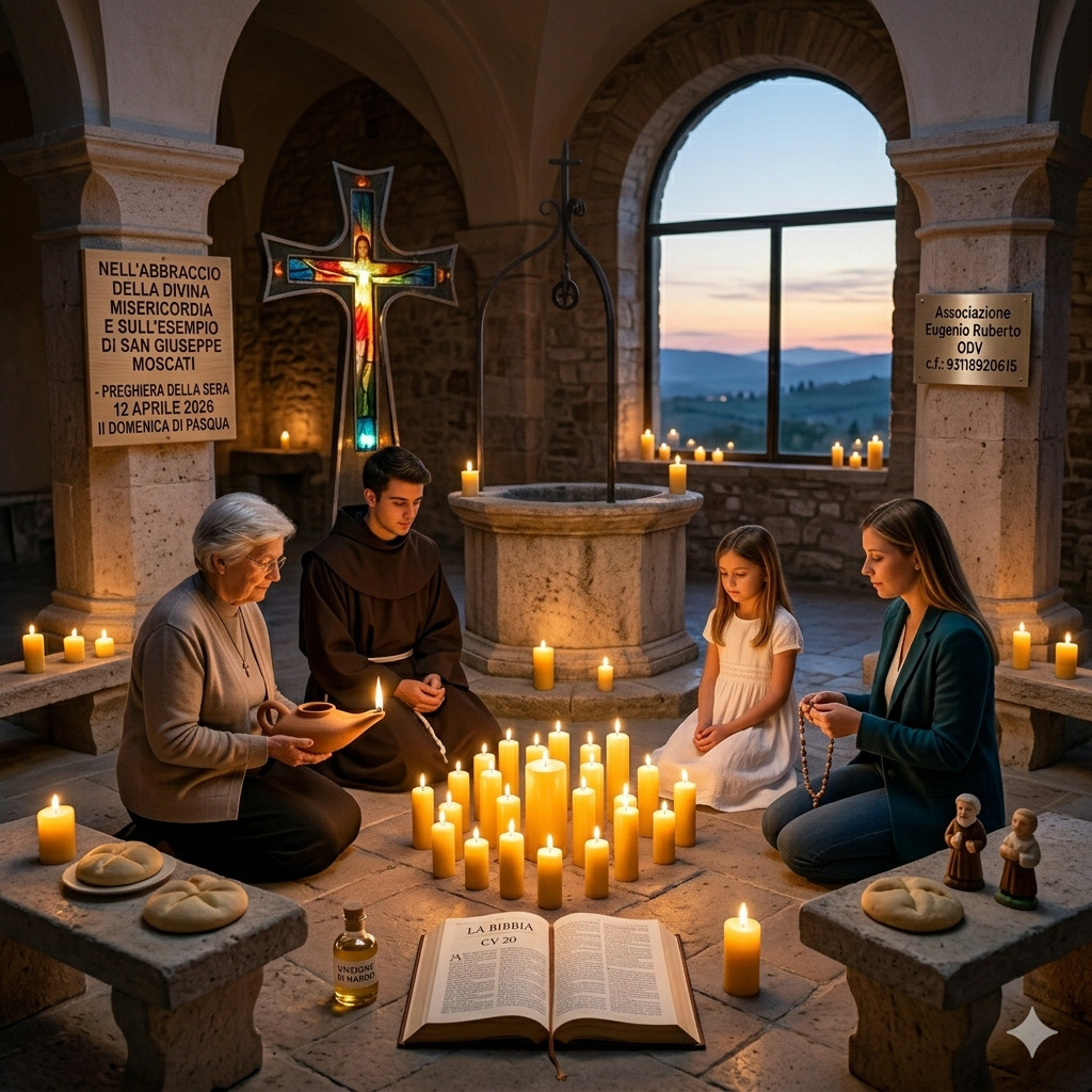 In questa Seconda Domenica di Pasqua, Domenica della Divina Misericordia, la preghiera della sera 12 aprile 2026 si eleva come un canto di gratitudine per l'amore infinito che sgorga dal cuore trafitto del Risorto, arricchita dalla luminosa testimonianza di San Giuseppe Moscati.