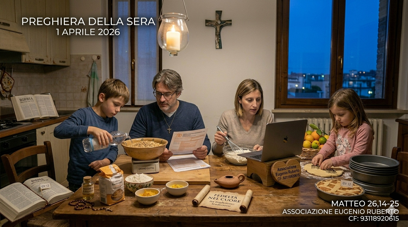 In questo Mercoledì Santo, ci prepariamo ad entrare nel vivo del Triduo Pasquale con la preghiera della sera 1 aprile 2026, meditando sul contrasto tra l'oscurità del tradimento e la luce delle tradizioni che sanno di casa e di risurrezione.