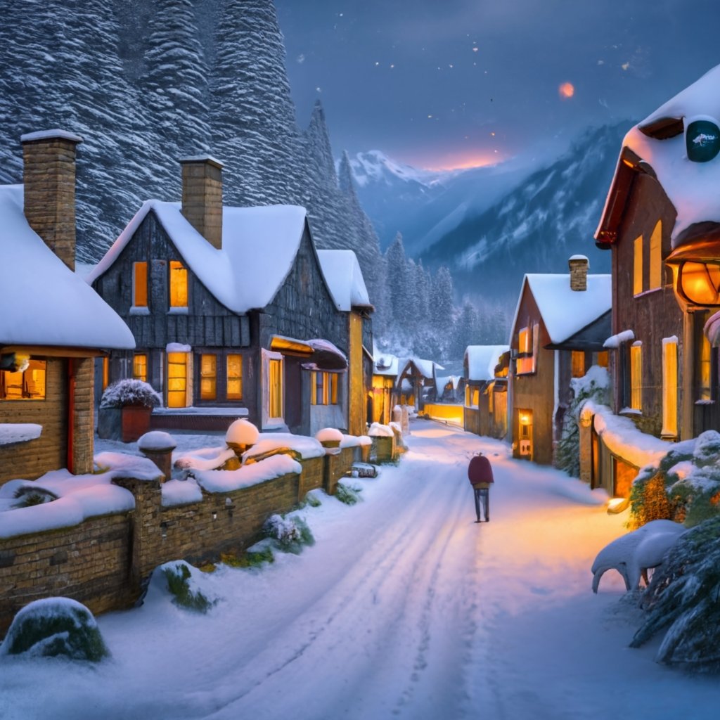 Winterliche Stille: Schritte im Schnee und Dorfklänge für erholsamen Schlaf