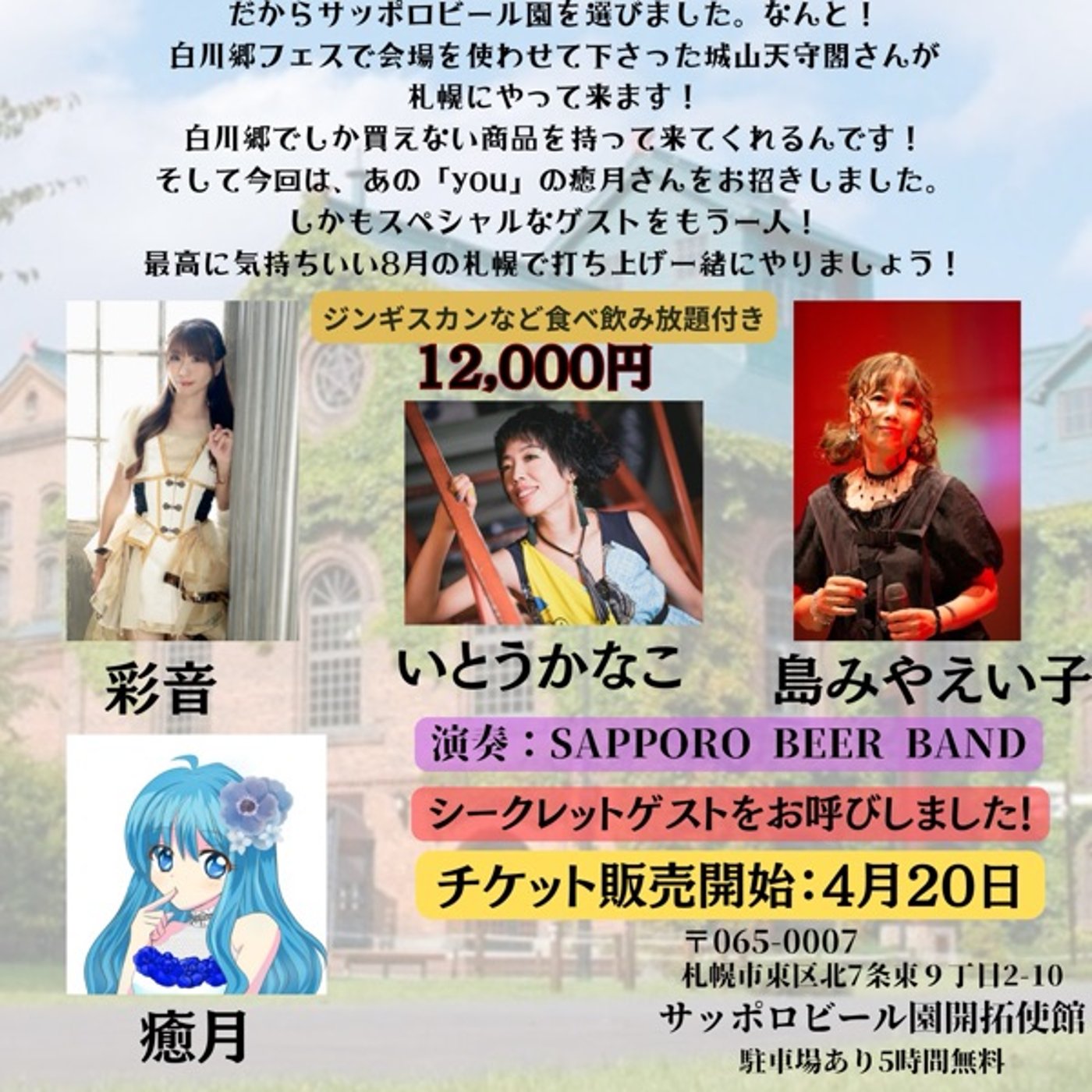 2026年8月2日(日) サッポロビール園にて白川郷フェス打ち上げライブ開催です。 --- stand.fmでは、この放送にいいね・コメント・レター送信ができます。 https://stand.fm/channels/623ad1537cd2c743285db8de