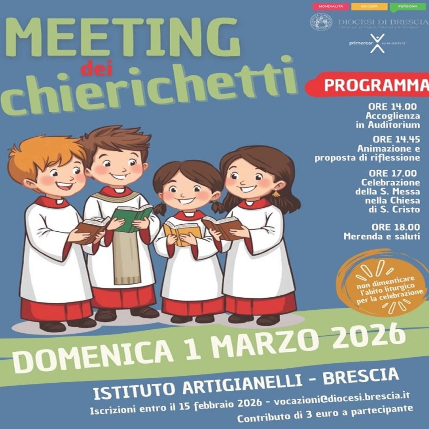 Domenica 1 marzo, dalle ore 14, presso l’Istituto Artigianelli a Brescia, si svolgerà il Meeting dei Chierichetti. Abbiamo parlato con don Mattia Cavazzoni, incaricato per la Pastorale Vocazionale diocesana dei preadolescenti e adolescenti.