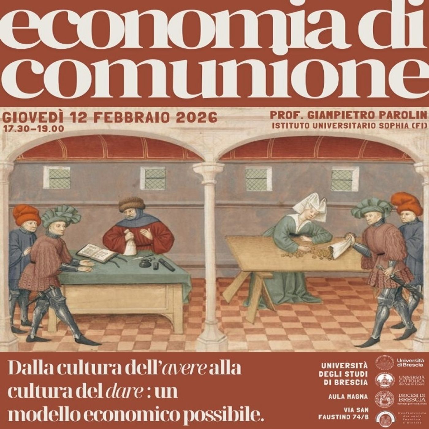 “Economia di comunione - Dalla cultura dell’avere alla cultura del dare: un modello economico possibile”. E’ il titolo dell’incontro che si terrà giovedì 12 febbraio alle 17.30 presso Aula Magna dell’Università degli studi di Brescia (Via San Faustino 74/b). Il relatore sarà il prof. Giampietro Parolin, docente presso l’Istituto Universitario Sophia di Firenze. Ne abbiamo parlato con don Lorenzo Bacchetta, responsabile del Servizio diocesano per l’Università .