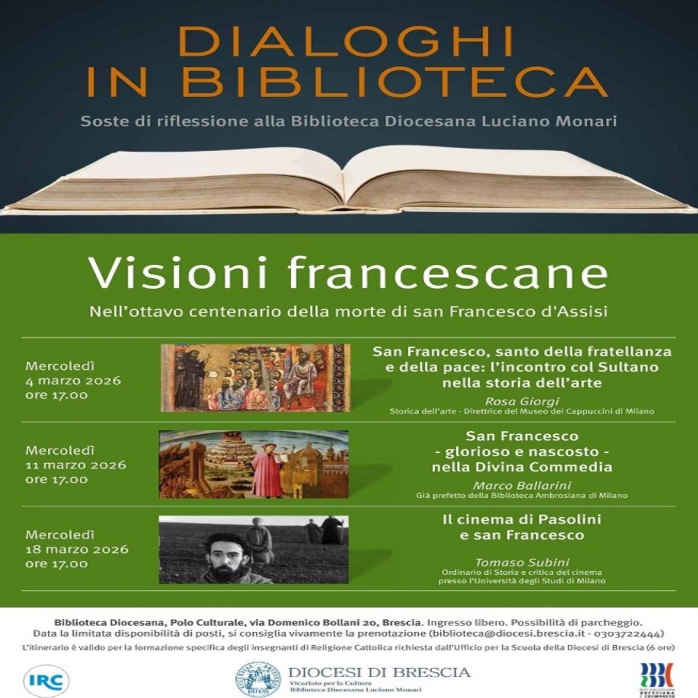 "Dialoghi in biblioteca". Siamo nell’anno dell’ottavo centenario della morte di San Francesco d’Assisi. La Biblioteca Diocesana Luciano Monari propone tre incontri dedicati alla rappresentazione del Santo nell’arte, nella letteratura e nel cinema. Abbiamo parlato con il direttore, don Alberto Donini.