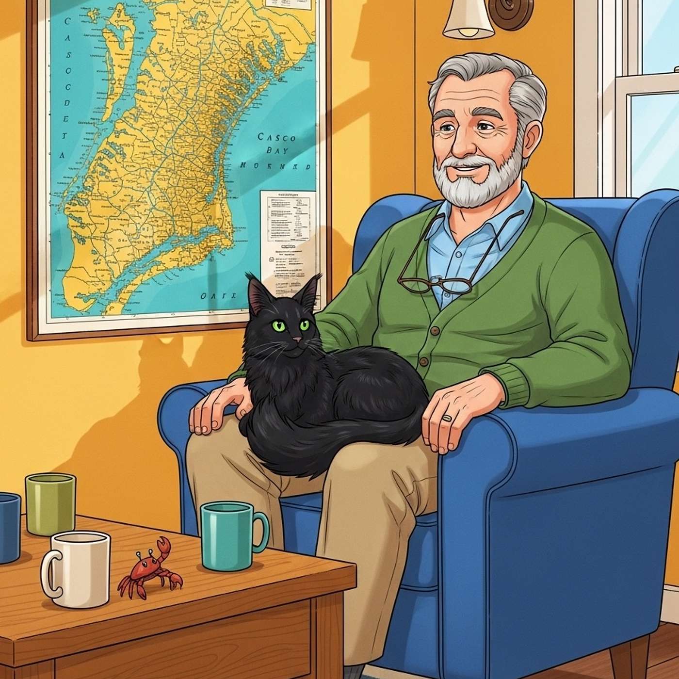 ( Warm, steady, slightly gravelly, and wise. Imagine the sound of a rocking chair or a coffee mug setting down on a wooden table.)