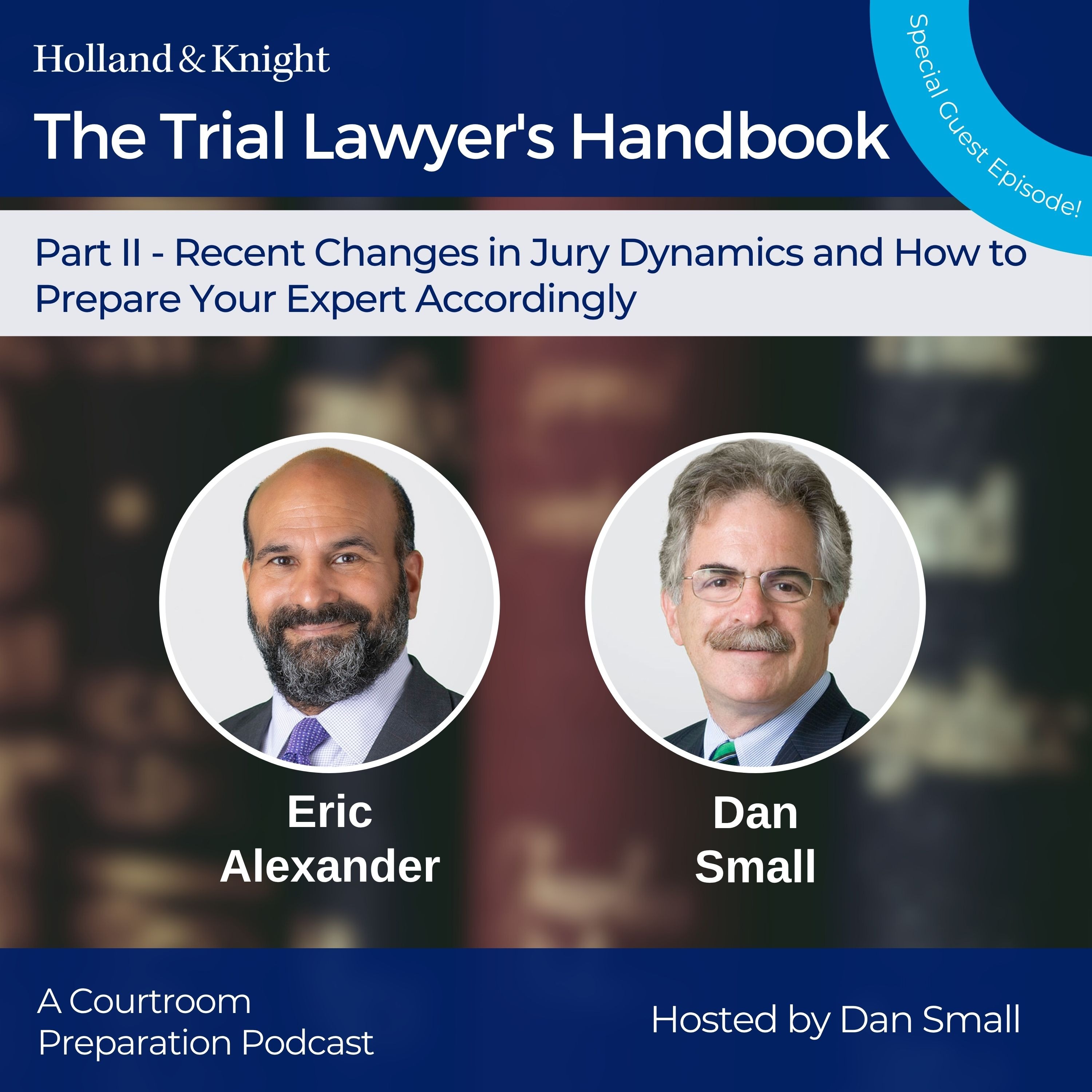 The Trial Lawyer's Handbook is a Courtroom Preparation podcast series brought to you by Holland & Knight. This series is hosted by litigation attorney Dan Small and is based on a longstanding article series he co-authored with Judge Dennis Saylor for Massachusetts Lawyers Weekly. Listeners of this series will gain a fresh perspective on how attorneys can address various trial preparation issues and set themselves up for success in and out of the courtroom.