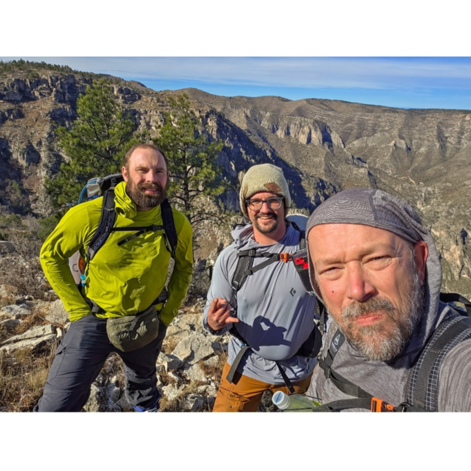 I think this is my favorite picture from the trip. At this point… we were wrecked. Physically drained. Mentally spent. Thorns in our legs… even pushing through our shoes into our feet. We were running on fumes… knowing we still had a 5-mile road walk to the empty ranger station. But we also knew… we still had each other. This is why we love the Guadalupe Mountains. And this is why there’s nothing like the bond you build with your hiking brothers. Sam, Henning, we’ve been through some things out there… long miles, ba...