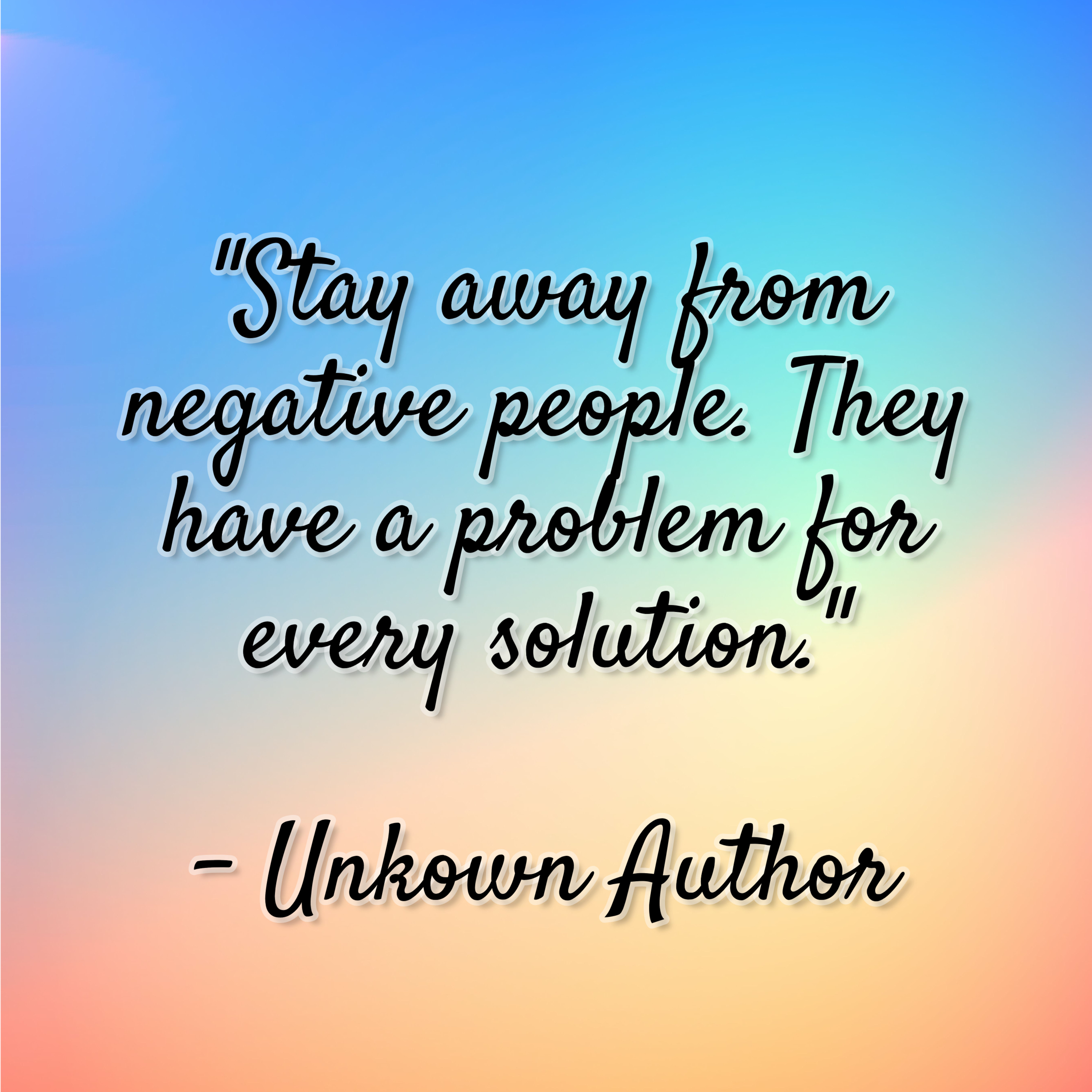Unkown Author- "Stay away from negative people. They have a problem for every solution."