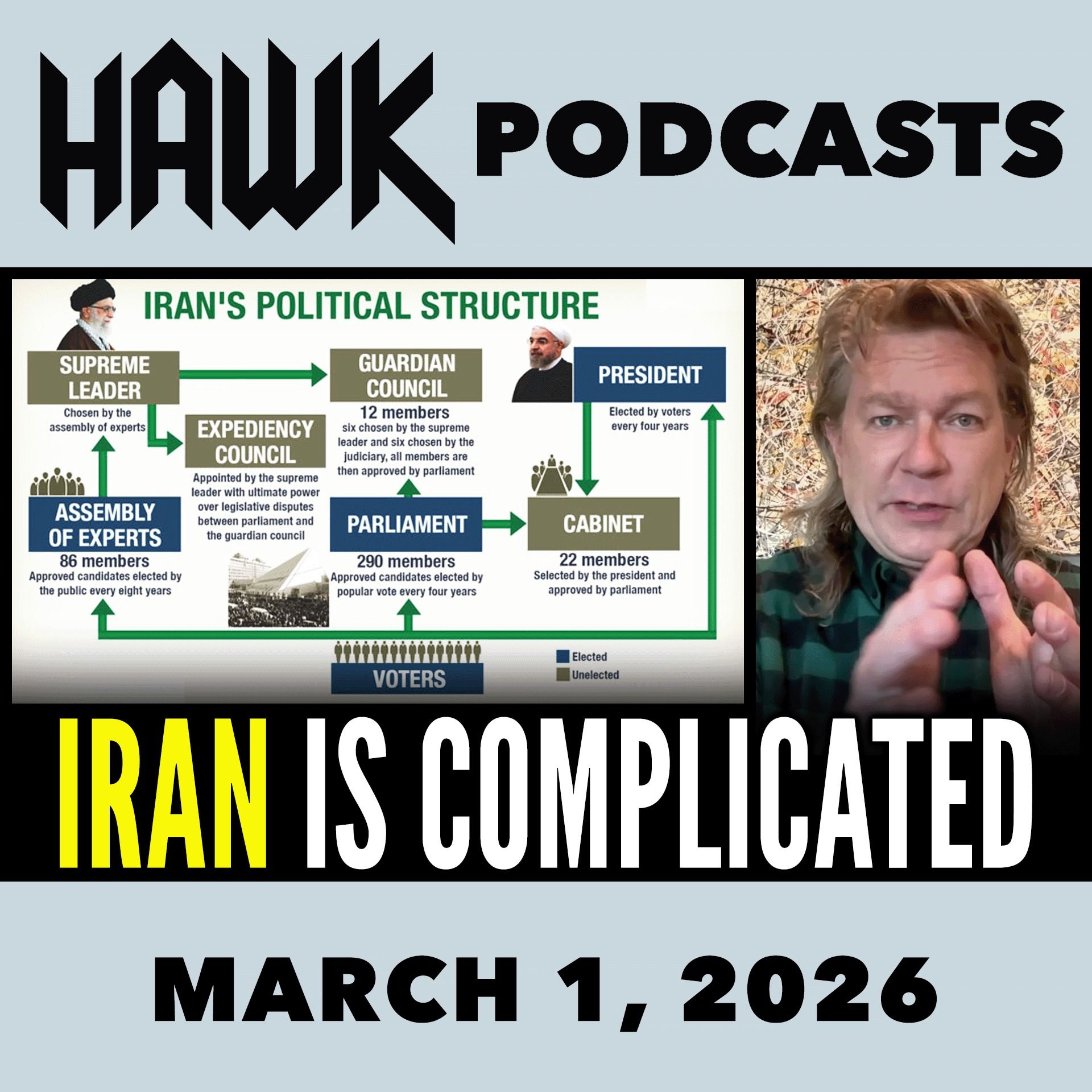 Hawk breaks down the structure of Iran's government following the United States and Israeli military strikes that killed Supreme Leader Ayatollah Ali Khamenei, who held power since 1989. With American service members already killed and more strikes expected over the coming days and weeks, Hawk walks through how Iran's theocratic government actually works and why the death of the Supreme Leader is so significant.