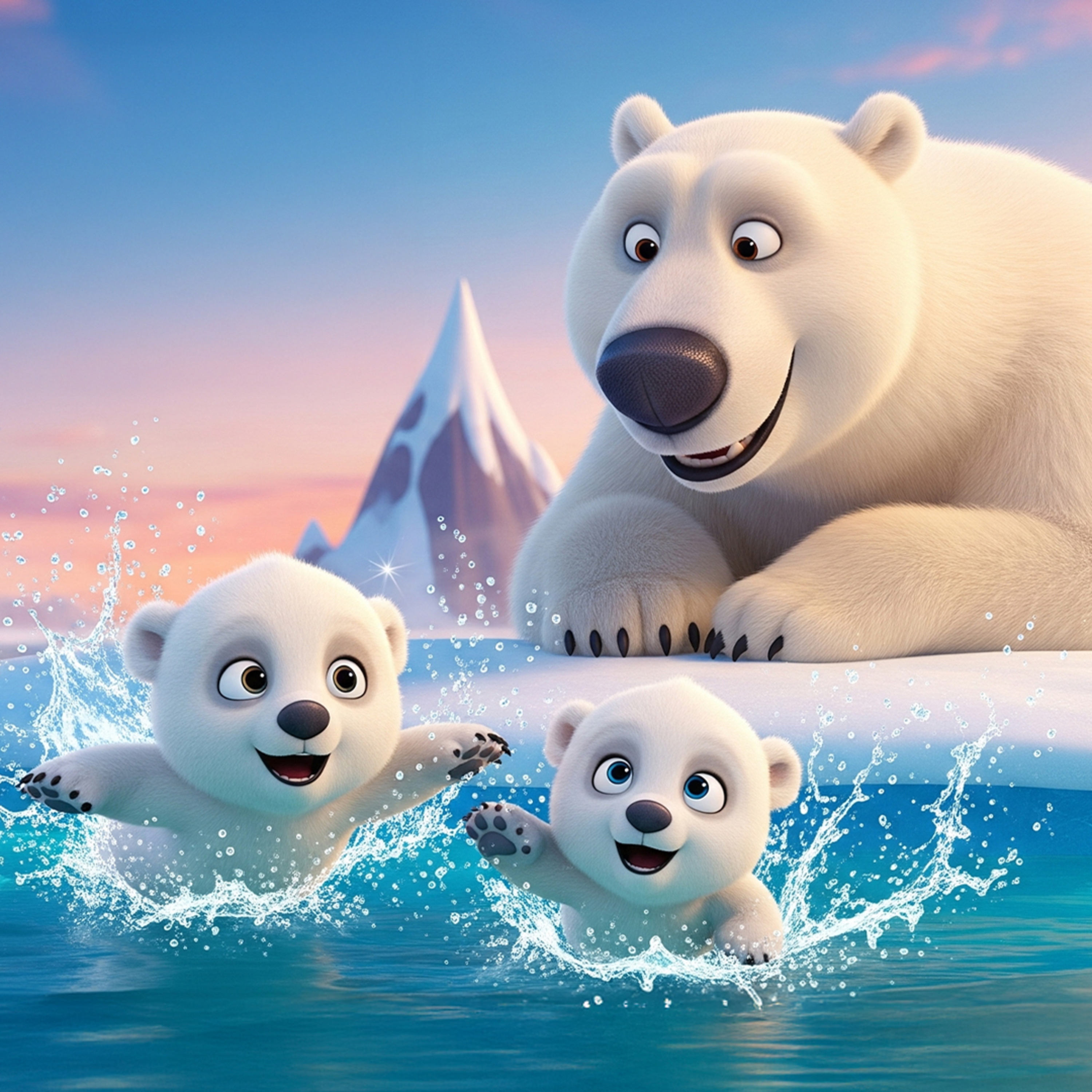 I denne hyggelige godnathistorie møder vi Store Bjørn og hendes nysgerrige unger, som skal lære at svømme for allerførste gang. Det er en fortælling om mod, leg, kærlighed og små bjørnepoter i iskolde bølger. Perfekt til sengetid eller en rolig stund i løbet af dagen.