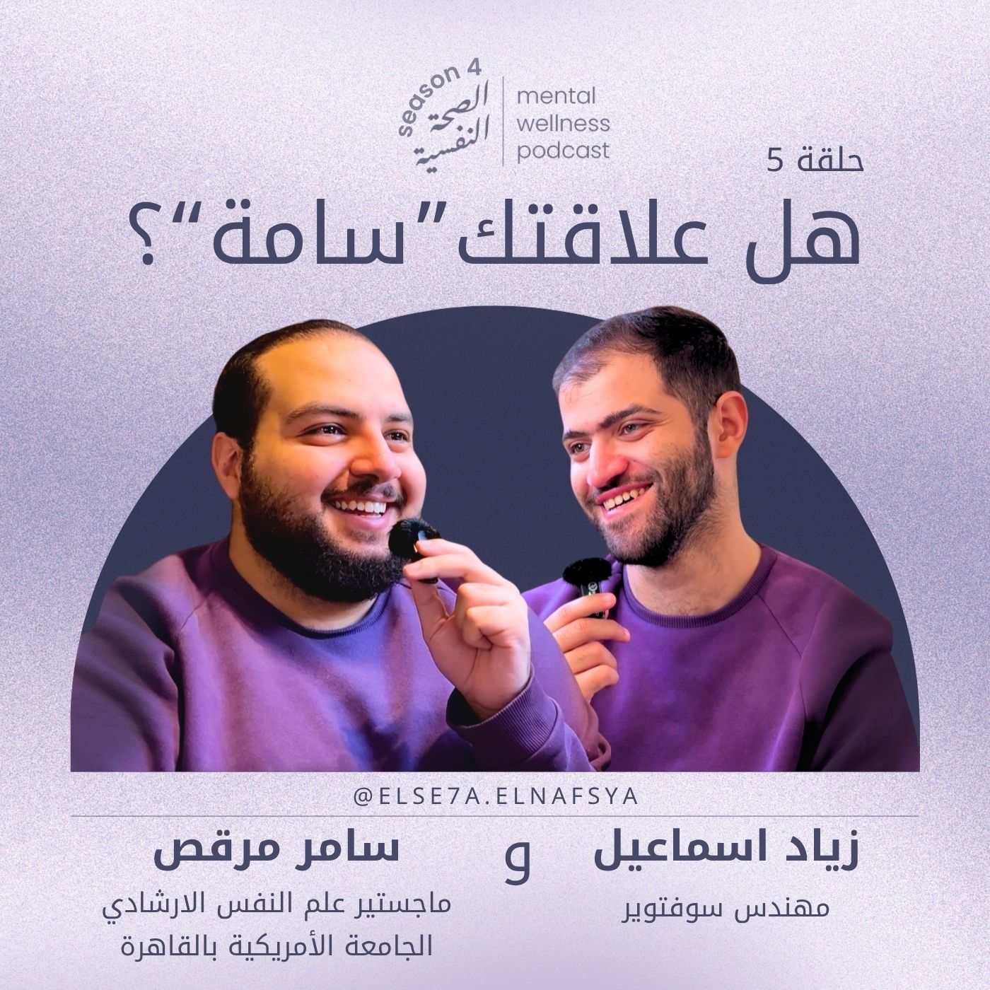 عمرك فكرت في الفرق بين الصحة النفسية والدكاترة النفسيين؟ جه الوقت اللي نفهم فيه أهمية وتفاصيل صحتنا النفسية. انسوا الوصمات—مفيش حاجة اسمها "مجنون"، بس فيه طرق للوصول إلى صحة نفسية أفضل!انضموا لرحلة توعية عن الصحة النفسية و مهنة العلاج النفسي مع سامر مرقص، معالج نفسي إرشادي محترف حاصل على ماجستير في الإرشاد النفسي من الجامعة الأمريكية بالقاهرة، و زياد إسماعيل، اللي بيمثل كتير مننا وعاوز يفهم أكتر عن الصحة النفسية.مع بعض، هنتعمق في موضوع الصحة النفسية من منظور متخصص وعلمي. تابعونا عشان نصحح المفاهيم الخاطئة، نلاقي رؤى جديدة، ونتعلم إزاي نحسن صحتنا النفسية.