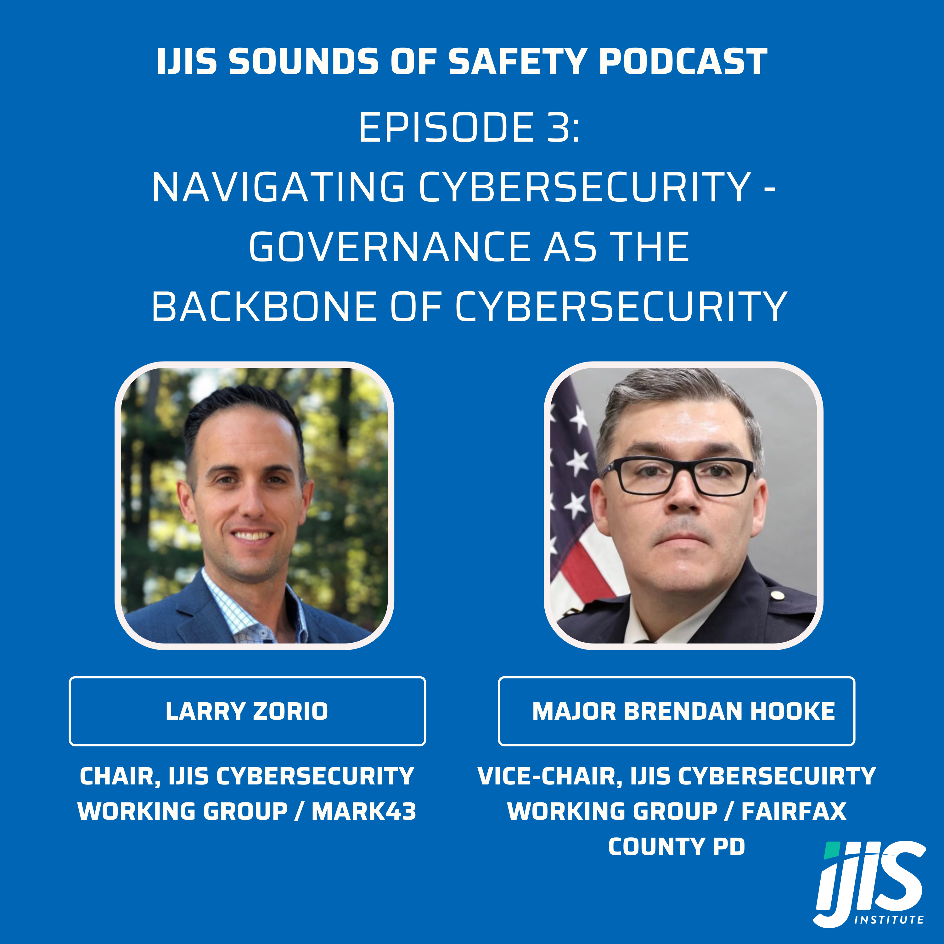 On today’s episode, we welcome back Larry Zorio, Chair of the IJIS Cybersecurity Working Group, and introduce the newly appointed Working Group Vice-Chair, Major Brendan Hooke, from Fairfax County Police Department. For the second episode of the Navigating Cybersecurity series, Larry and Major Hooke will discuss the first core function of the NIST CSF framework entitled “Govern”. They will provide a deep dive into the importance for agencies to develop risk management strategies and craft, communicate, and monitor effective policies. Learn about the best practices and how to combat the ongoing barrage of cyber-related issues.