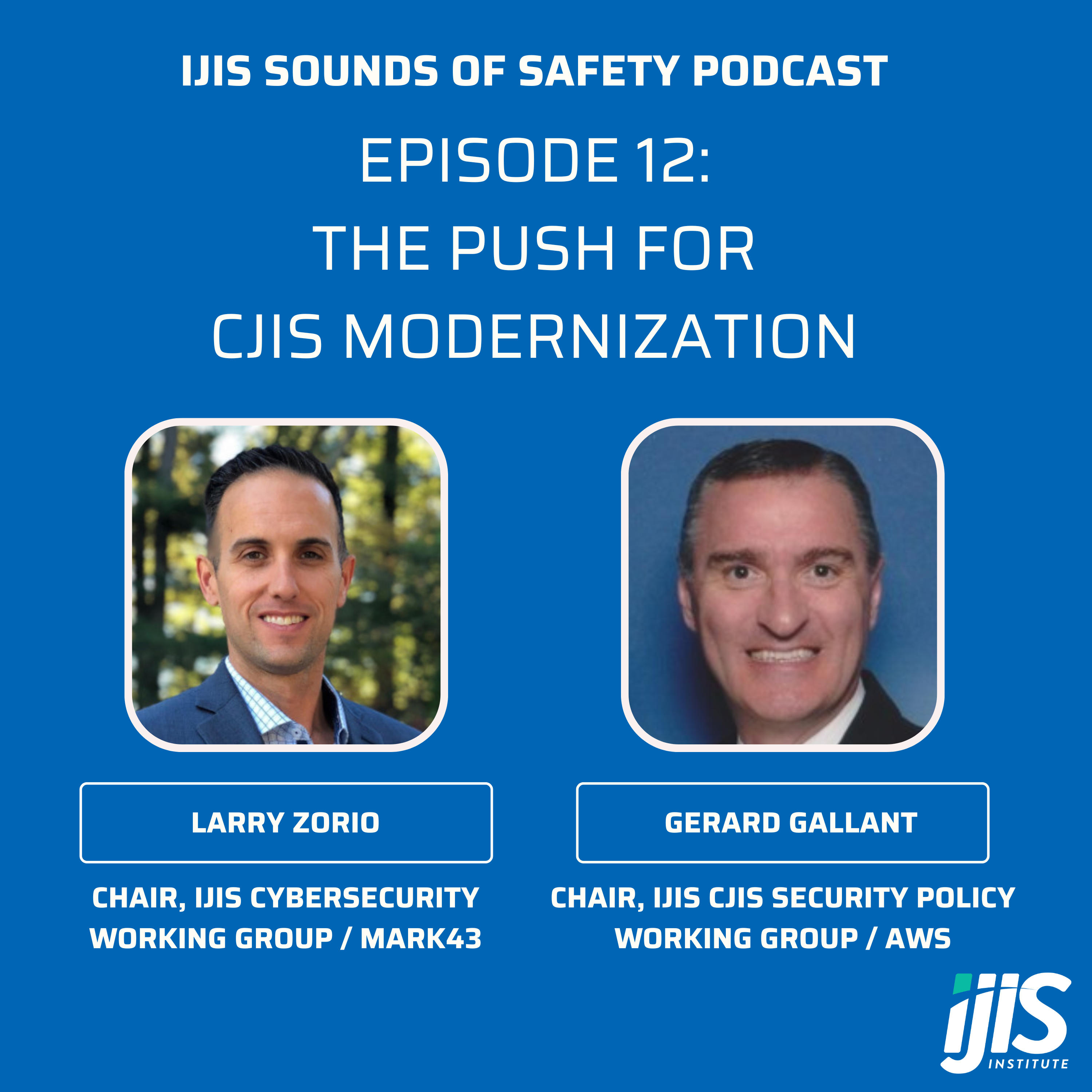On this episode of the IJIS Sounds of Safety Podcast, we’re diving into a crucial conversation on the evolution and modernization of the CJIS Security Policy. Leading this discussion is Larry Zorio, Chair of the IJIS Cybersecurity Working Group, alongside our esteemed guest, Gerard Gallant, Chair of the Institute’s CJIS Security Policy Working Group. Together, they’ll break down key priorities agencies should focus on to strengthen their understanding and compliance with this constantly evolving policy. Stay tuned for valuable insights that will help enhance the security of criminal justice information for agencies across the nation.