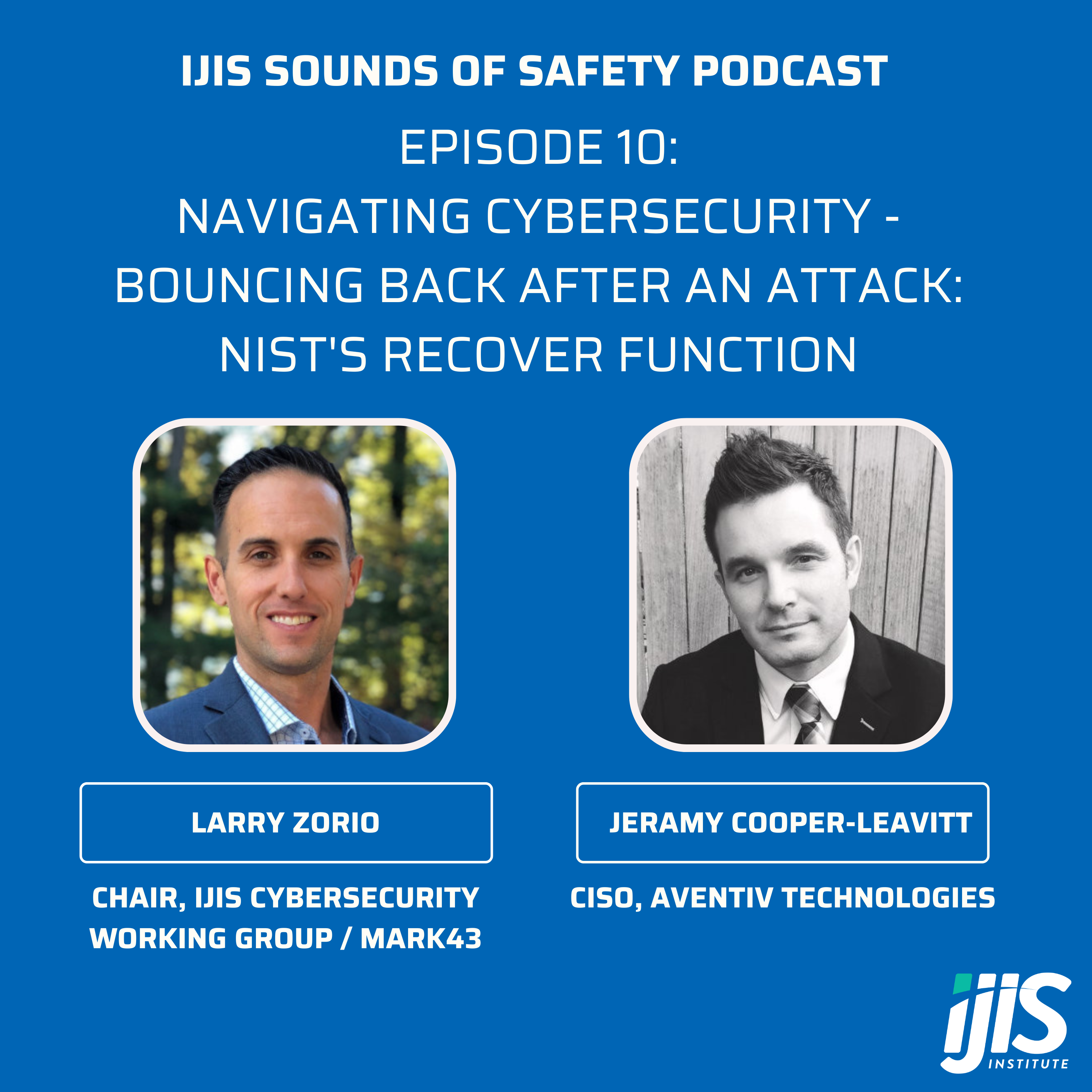 Today, the IJIS Sounds of Safety Podcast welcomes back Larry Zorio and Jeramy Cooper-Leavitt for another installment of the Navigating Cybersecurity Series. In this episode, they’ll dive into the sixth and final core function of the NIST Cybersecurity Framework: Recover. The Recover function identifies appropriate activities and supports the timely recovery to normal operations of assets, such as data, applications, and infrastructure, impacted by a cybersecurity incident.