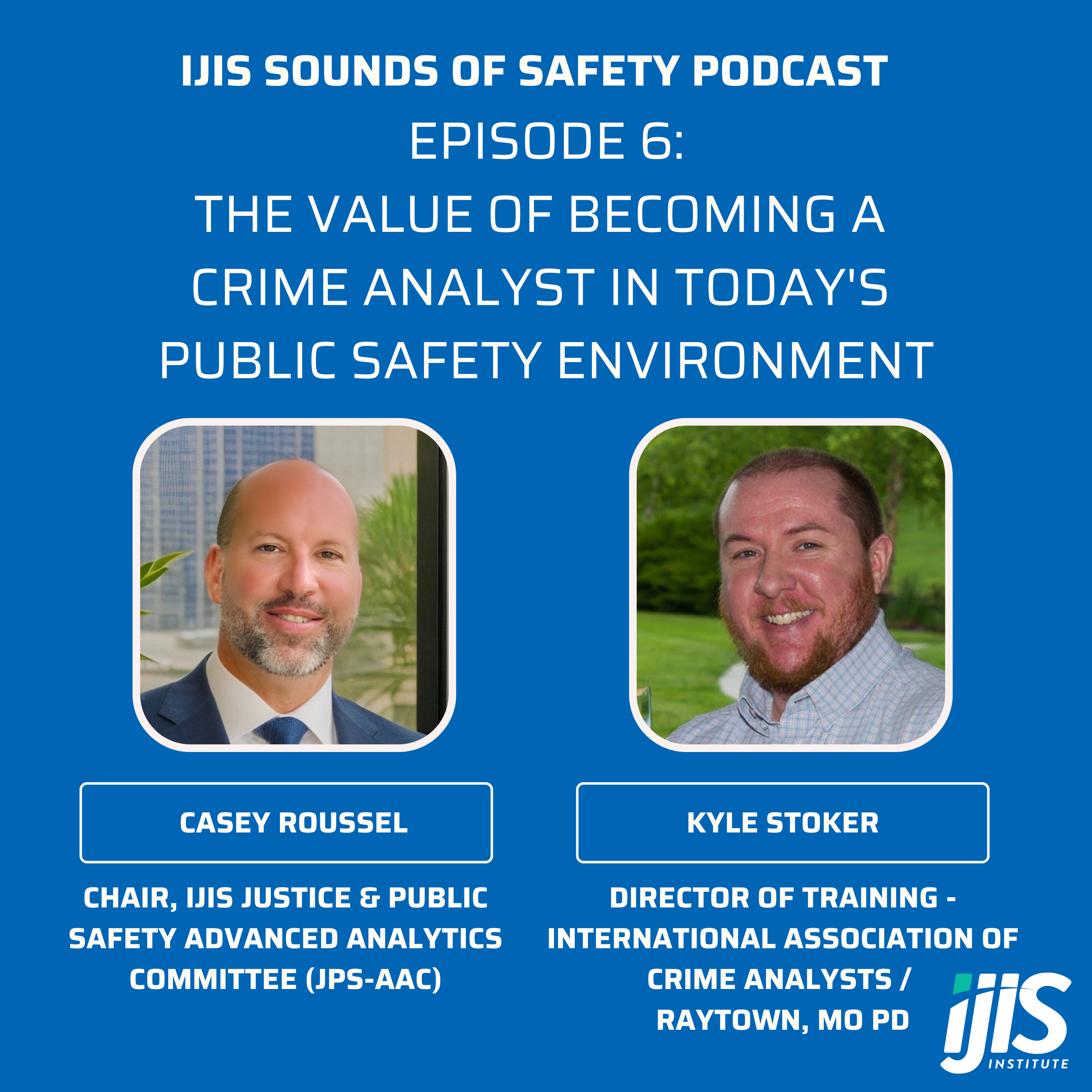 On today’s episode, IJIS would like to welcome two members of our Justice & Public Safety Advanced Analytics committee. We have the chair, Casey Roussel, President and CCO of FusionStak who will speak to retired police chief Karl Wilmes about the changes that analytics has on law enforcement operations. Casey and Karl will detail how technologies like body cameras have changed operations within the law enforcement community over the years, showing the impacts of these new advances within the mission-critical space.