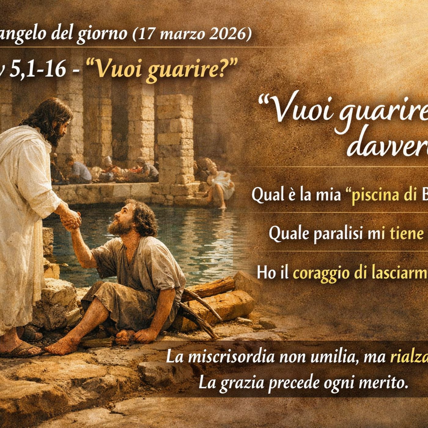 C’è una domanda che attraversa i secoli e continua a bruciare dentro ciascuno di noi: “Vuoi guarire davvero?” Non è un rimprovero, ma un invito a lasciarsi raggiungere da una Presenza che […]