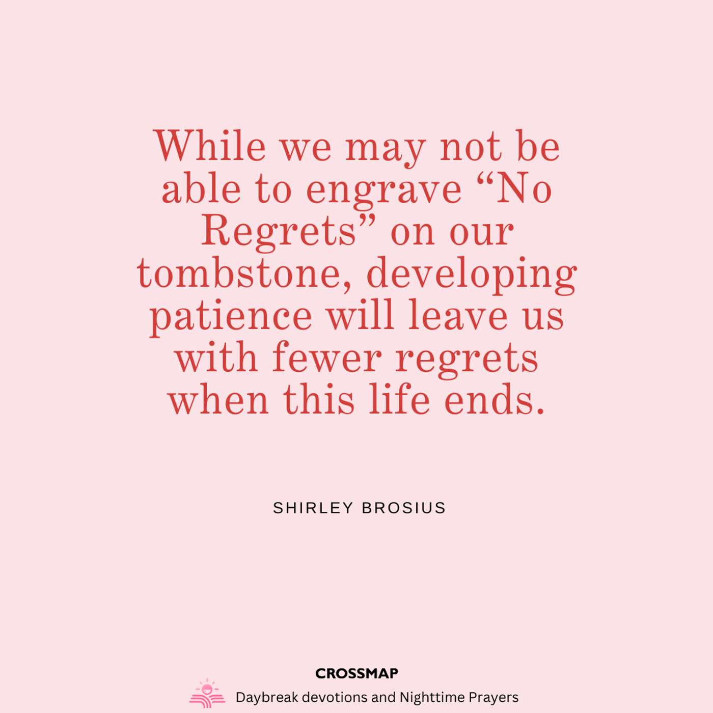 While we may not be able to engrave “No Regrets” on our tombstone, developing patience will leave us with fewer regrets when this life ends.