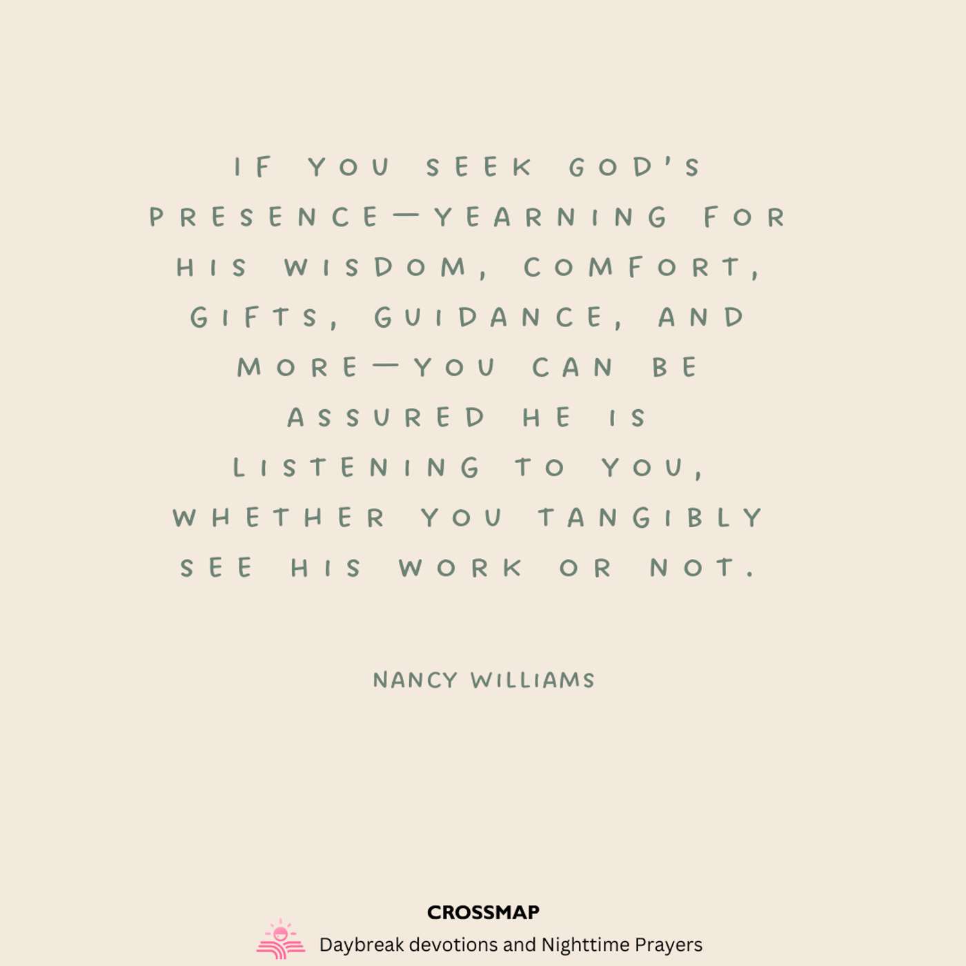 If you seek God’s presence—yearning for His wisdom, comfort, gifts, guidance, and more—you can be assured He is listening to you, whether you tangibly see His work or not.