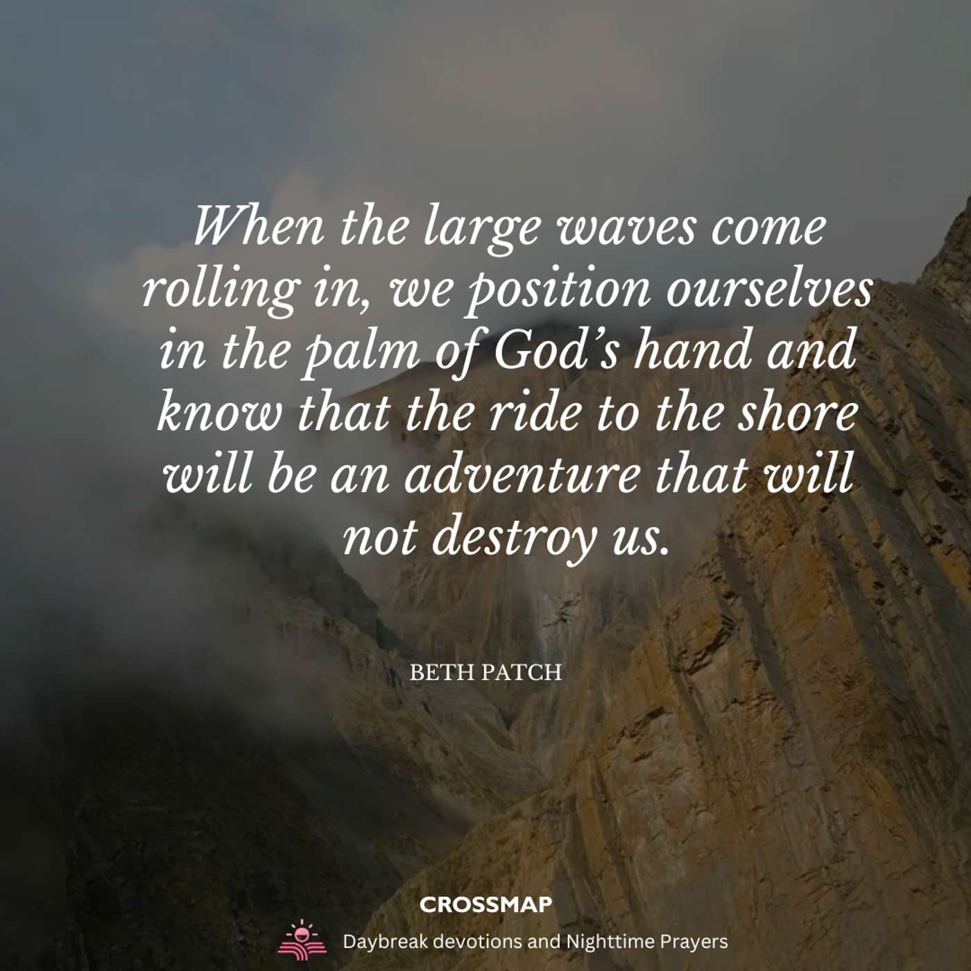 When the large waves come rolling in, we position ourselves in the palm of God’s hand and know that the ride to the shore will be an adventure that will not destroy us.