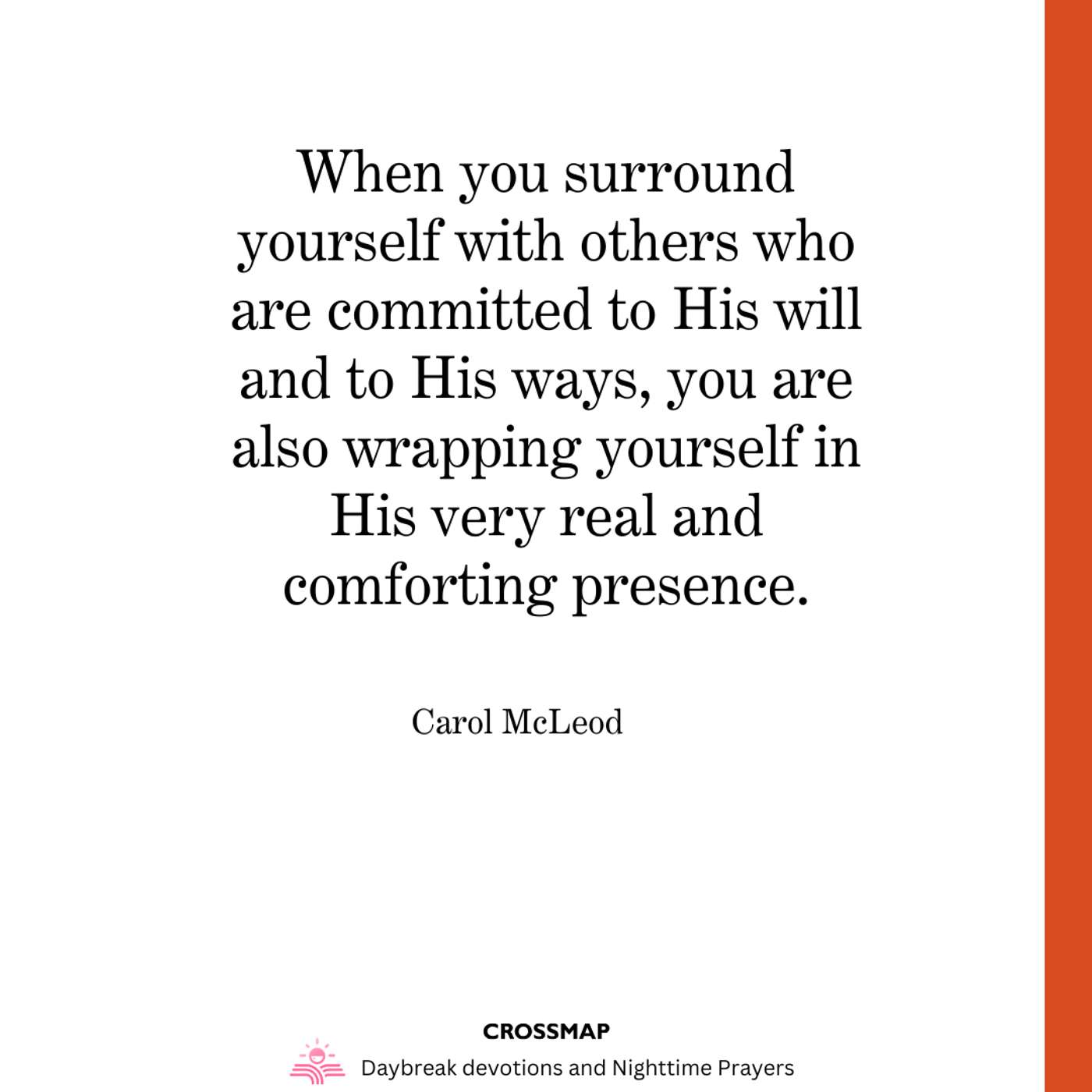 When you surround yourself with others who are committed to His will and to His ways, you are also wrapping yourself in His very real and comforting presence.