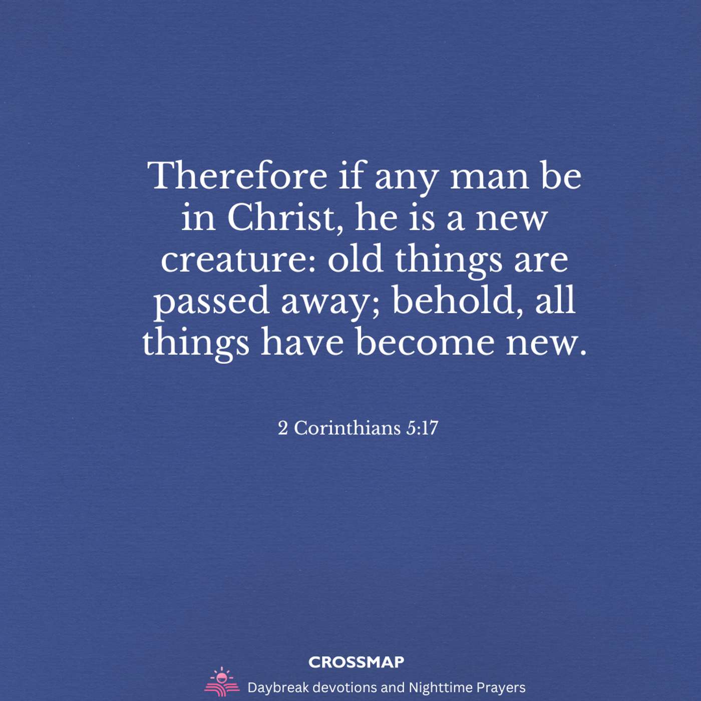 Therefore if any man be in Christ, he is a new creature: old things are passed away; behold, all things have become new. — 2 Corinthians 5:17