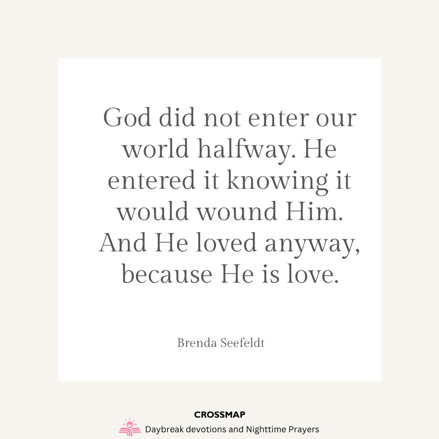 God did not enter our world halfway. He entered it knowing it would wound Him. And He loved anyway, because He is love.