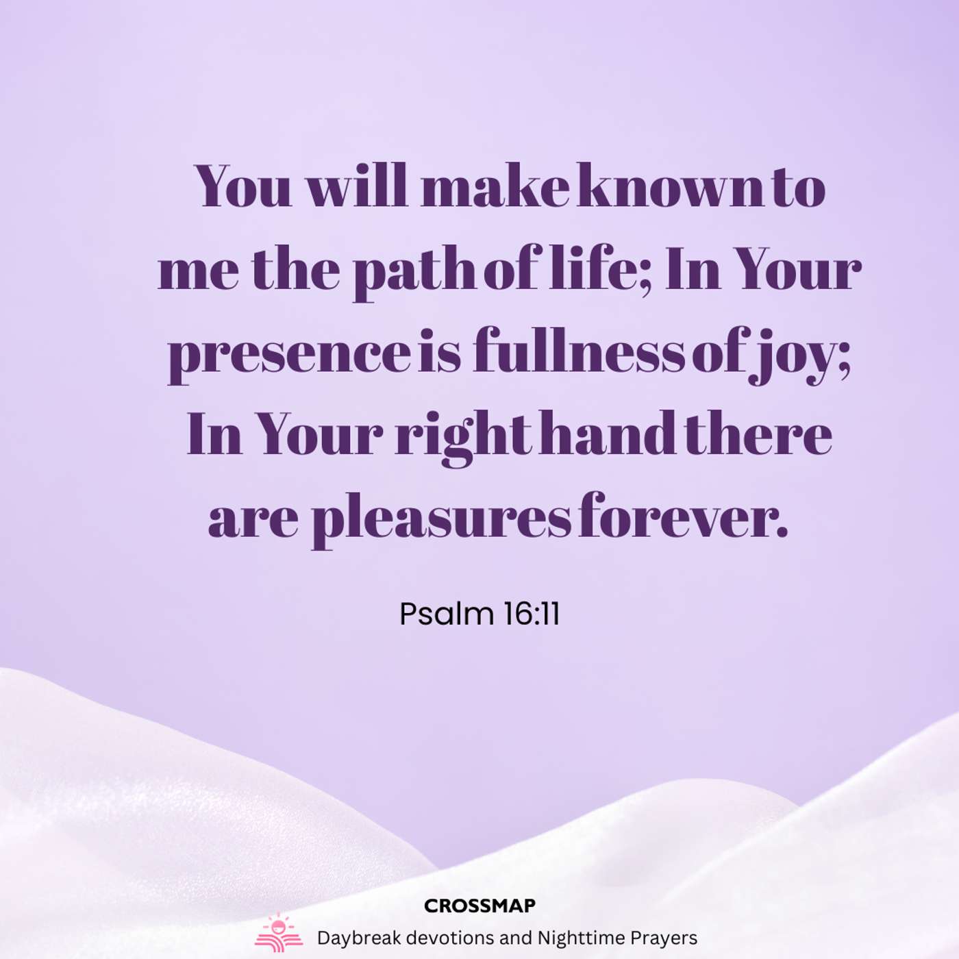 You will make known to me the path of life; In Your presence is fullness of joy; In Your right hand there are pleasures forever. – Psalm 16:11