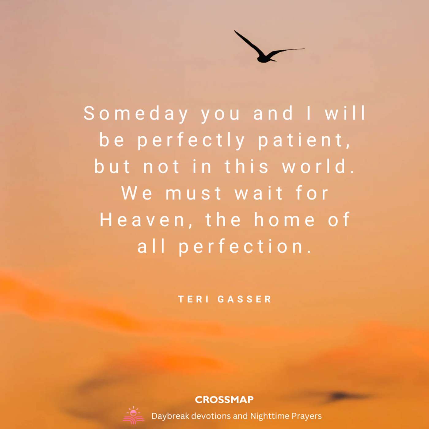 Someday you and I will be perfectly patient, but not in this world. We must wait for Heaven, the home of all perfection.