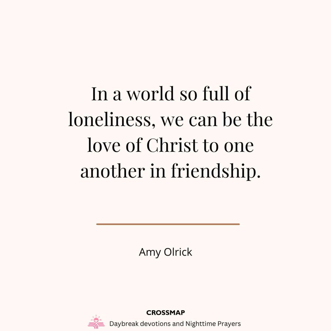 In a world so full of loneliness, we can be the love of Christ to one another in friendship.