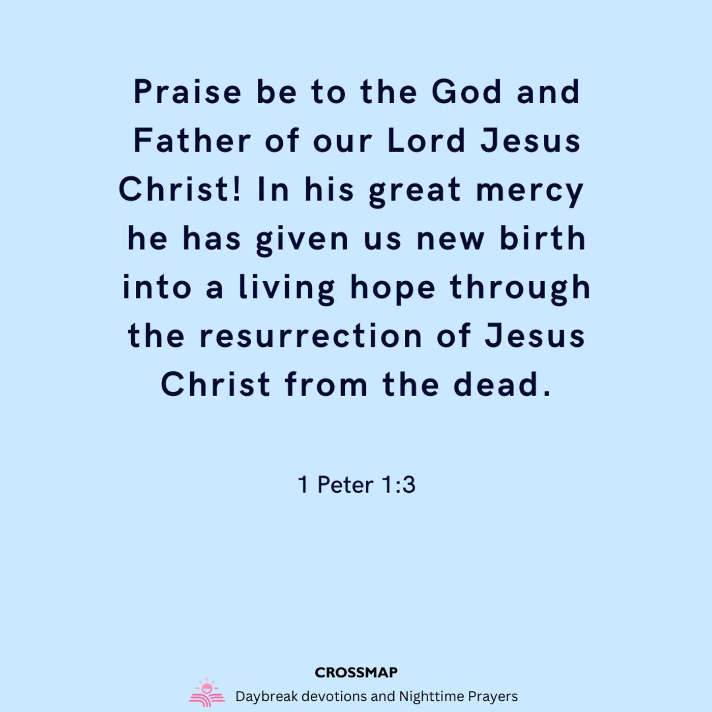 Praise be to the God and Father of our Lord Jesus Christ! In his great mercy he has given us new birth into a living hope through the resurrection of Jesus Christ from the dead. - 1 Peter 1:3