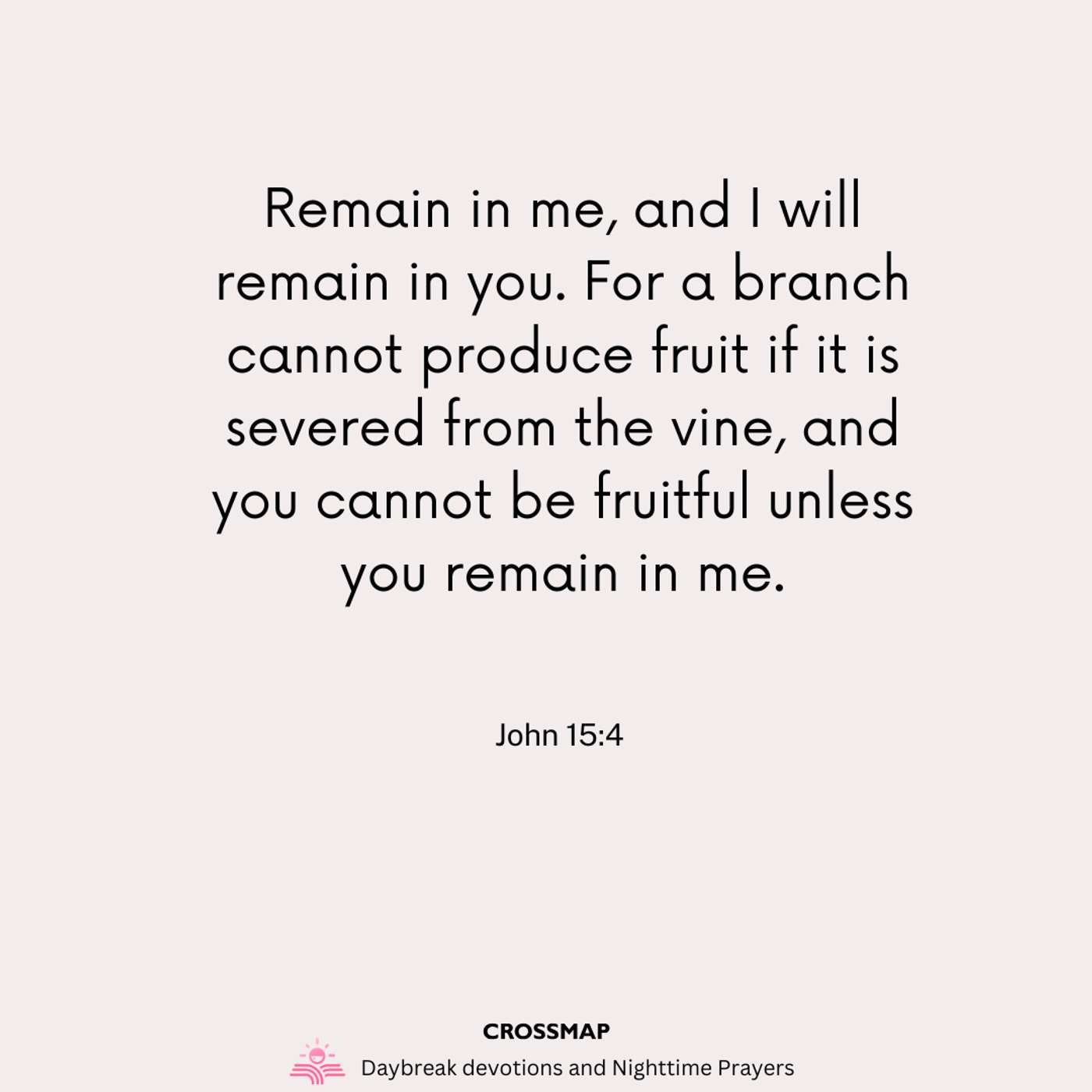 Remain in me, and I will remain in you. For a branch cannot produce fruit if it is severed from the vine, and you cannot be fruitful unless you remain in me. -- John 15:4