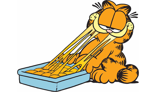 An episode of the animated version of the Garfield comic strip features the obese, anthropomorphic feline explaining his worldview in regards to nutrition and culinary criticism.