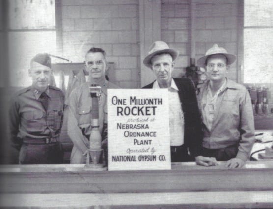 Throughout its active existence, The Nebraska Ordnance Plant near Mead was an early part of my life in Wahoo. Some of my school-yard friends had bomb-maker parents, I guess you could say.