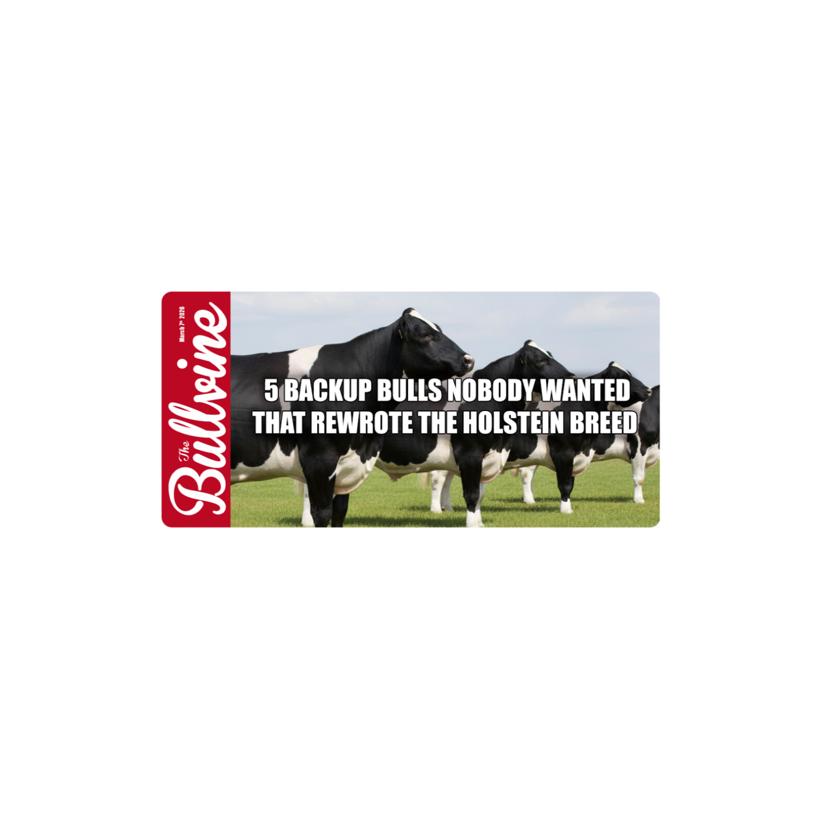 Five "backup" bulls nobody initially chased—Mark, Mtoto, O-Man, Blitz, and Elevation—now shape nearly every modern Holstein. Their stories follow the same relentless pattern: bred outside the fashion pipeline, ignored by the elite, and used first by commercial herds who saw what the catalogs missed. Discover how these overlooked outcrosses became the survival gear for a breed now facing 9.99% inbreeding.