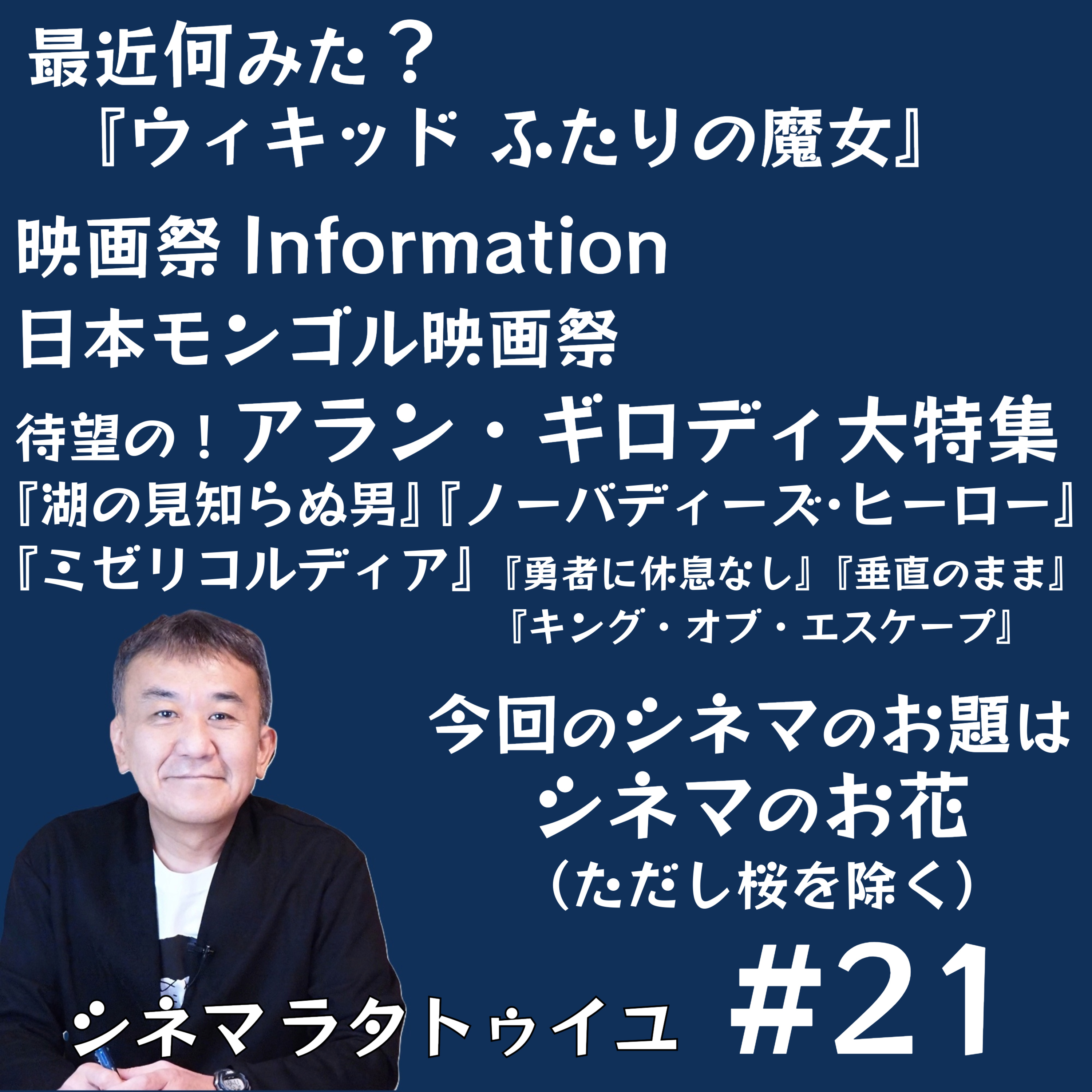 『ウィキッド』を語り、アラン・ギロディー監督『湖の見知らぬ男』『ノーバディーズ・ヒーロー』『ミゼリコルディア』をじっくり紹介。「日本モンゴル映画祭」も注目として語り、新たな「シネマのお題」は「シネマのお花(桜を除く)」!メッセージ、お待ちしております。こちらから!https://forms.gle/AixjXzRRYNSYPW5N8
