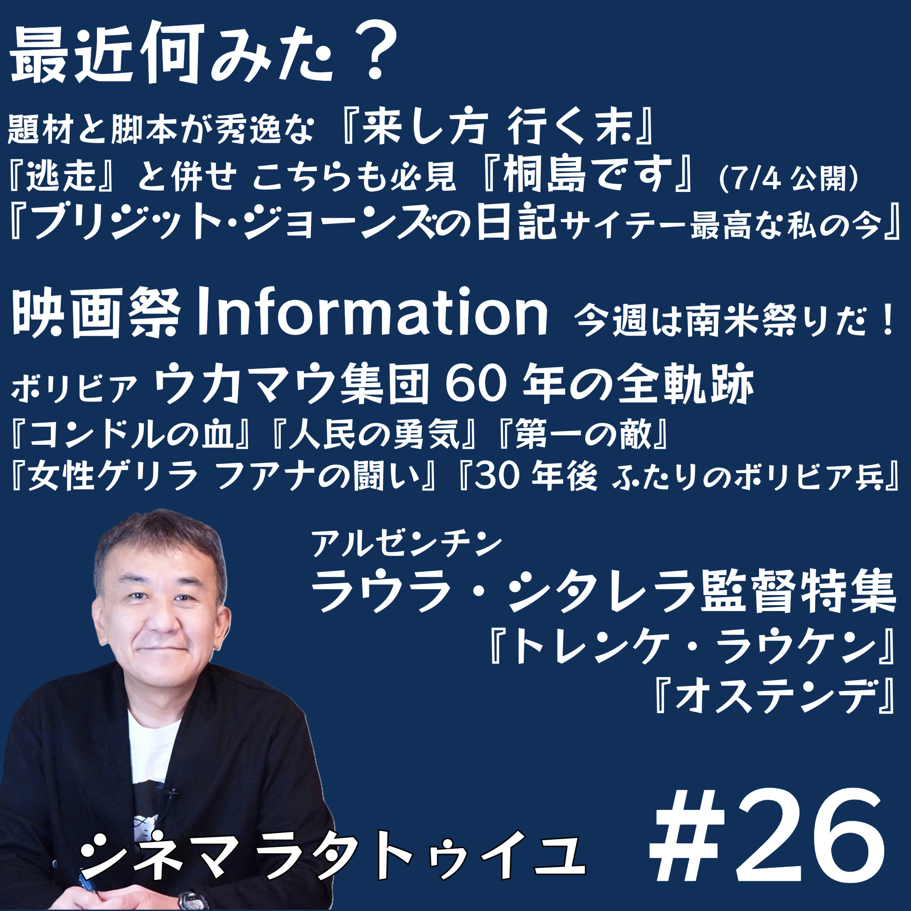 『来し方 行く末』『ブリジット・ジョーンズの日記4』『桐島です』などにメンションしつつ、『トレンケ・ラウケン』のラウラ・シタレラ監督特集と、ボリビアの映画製作集団「ウカマウ」の作品特集を紹介します。メールもお待ちしております。こちらから!https://forms.gle/AixjXzRRYNSYPW5N8