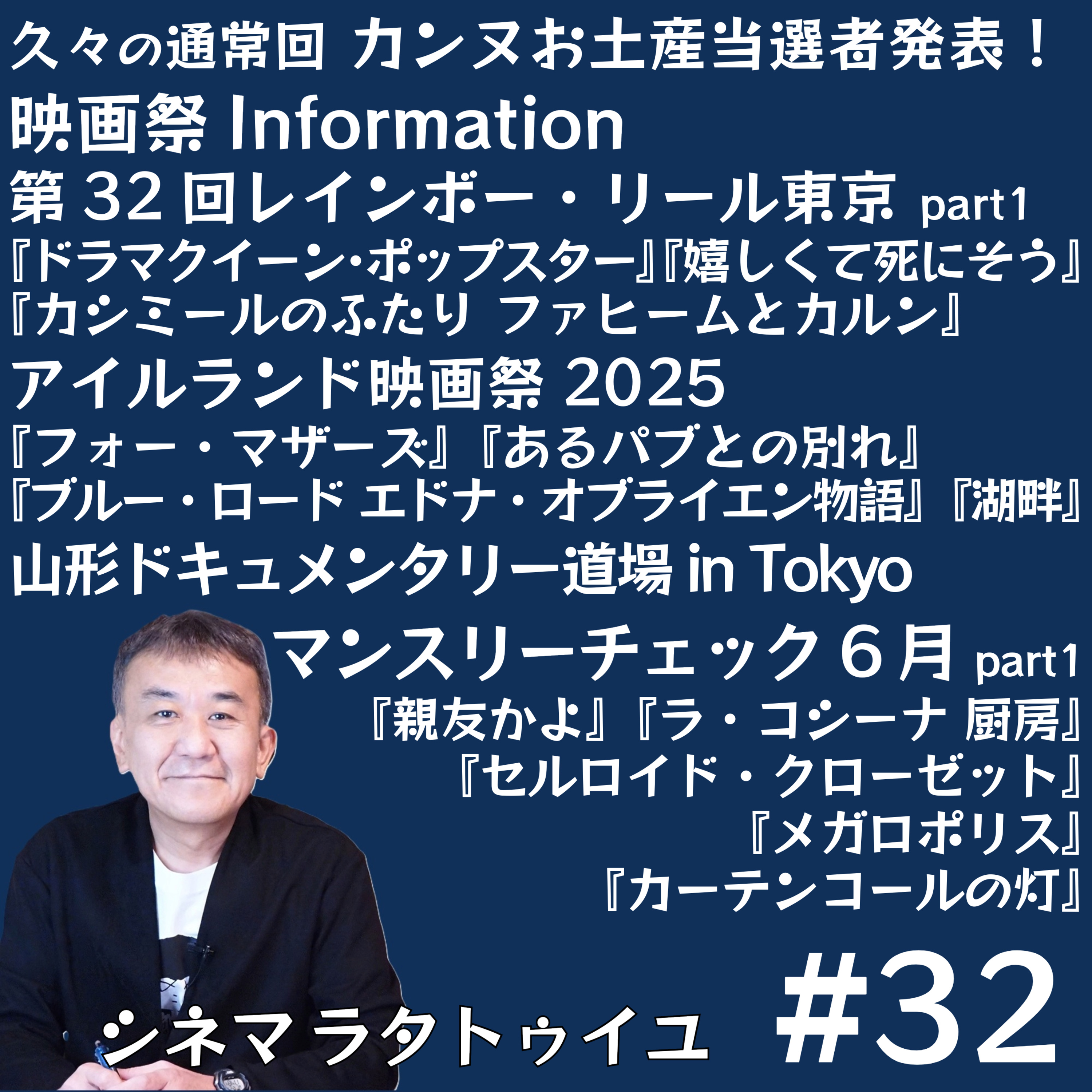 「レインボーリール映画祭」「アイルランド映画祭」「山形ドキュメンタリー道場in東京」の注目作品を紹介し、さらに6月公開作品チェックでは『親友かよ』『カーテンコールの灯』『セルロイド・クローゼット』等をメンション。メールもお待ちしております!https://forms.gle/AixjXzRRYNSYPW5N8
