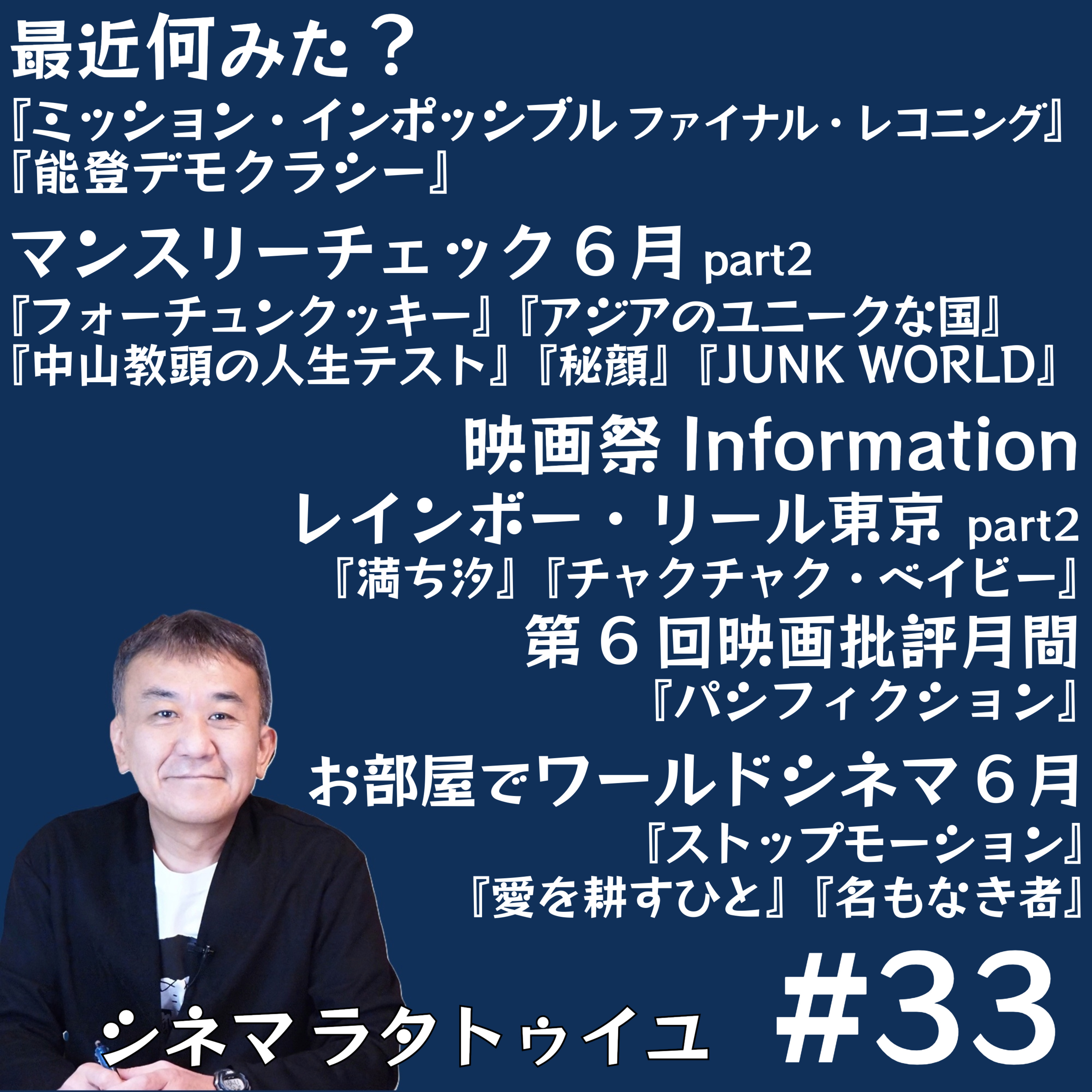 大推薦『フォーチュンクッキー』、形容不能の面白さ『アジアのユニークな国』、渋川清彦さん新境地『中山教頭の人生テスト』、どんでん返しを楽しむ『秘顔』、驚異の続編『ジャンク・ワールド』を語り、レインボーリール映画祭『満ち潮』『チャクチャクベイビー』を紹介しています。メールはこちらからお願いします!https://forms.gle/AixjXzRRYNSYPW5N8