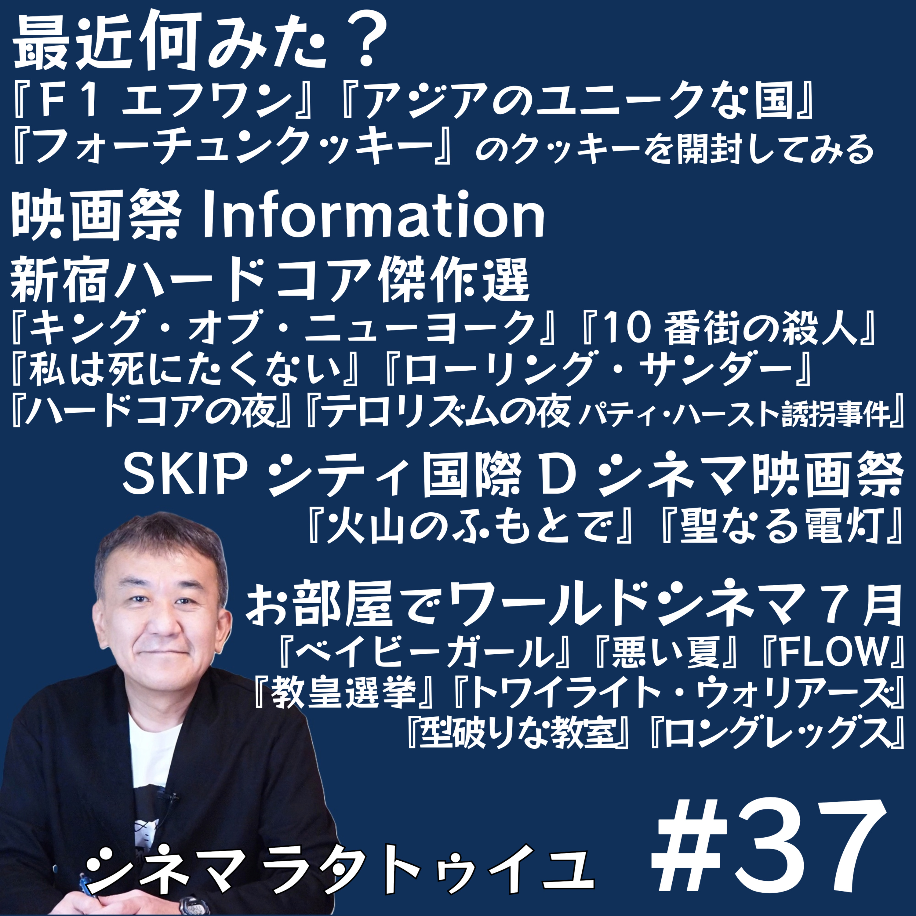 『アジアのユニークな国』がお勧めだ!と熱弁し、『F1』がよかったなあと触れてから、「新宿ハードコア傑作選」に注目し、『ローリング・サンダー』『ハードコアの夜』『十番街の殺人』『キング・オブ・ニューヨーク』『私は死にたくない』を紹介し、SKIPシティの外国映画もオススメしながら、7月に配信入りした作品をチェックします。メールはこちらまで!