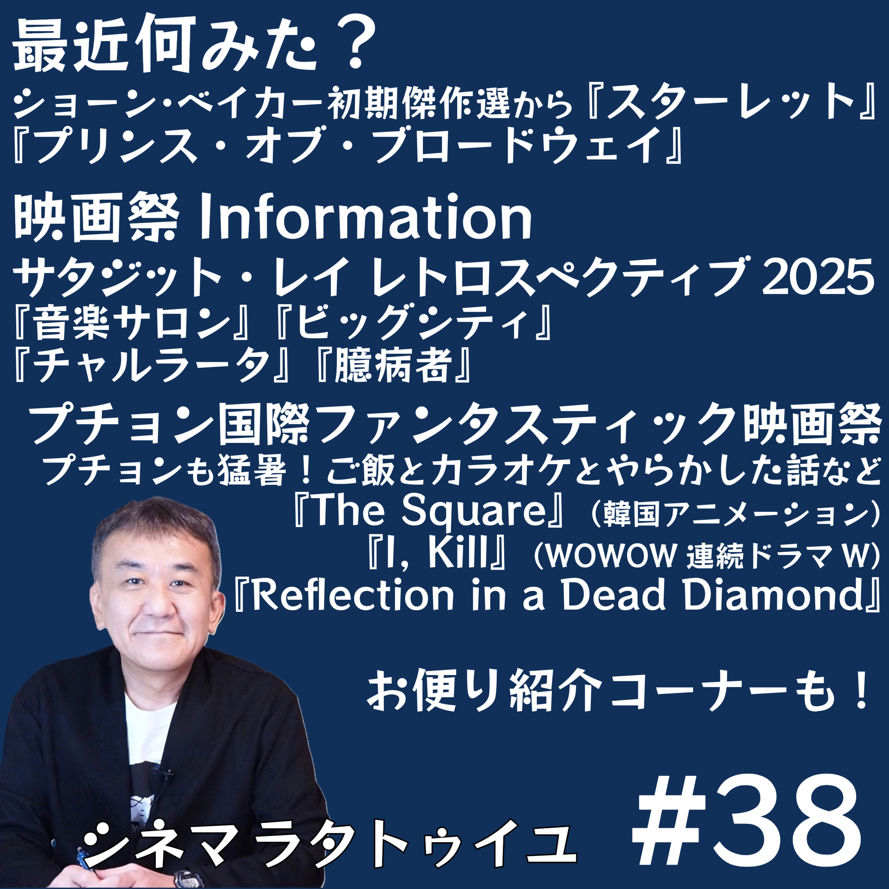 ショーン・ベイカー監督特集の『スターレット』『プリンス・オブ・ブロードウェイ』に触れてから、サタジット・レイ監督特集紹介の前編として幻想的な『音楽サロン』や必見『チャルラータ』等を熱く語り、韓国のプチョン映画祭出張報告とともに恥ずかしカラオケ体験トークも…!
