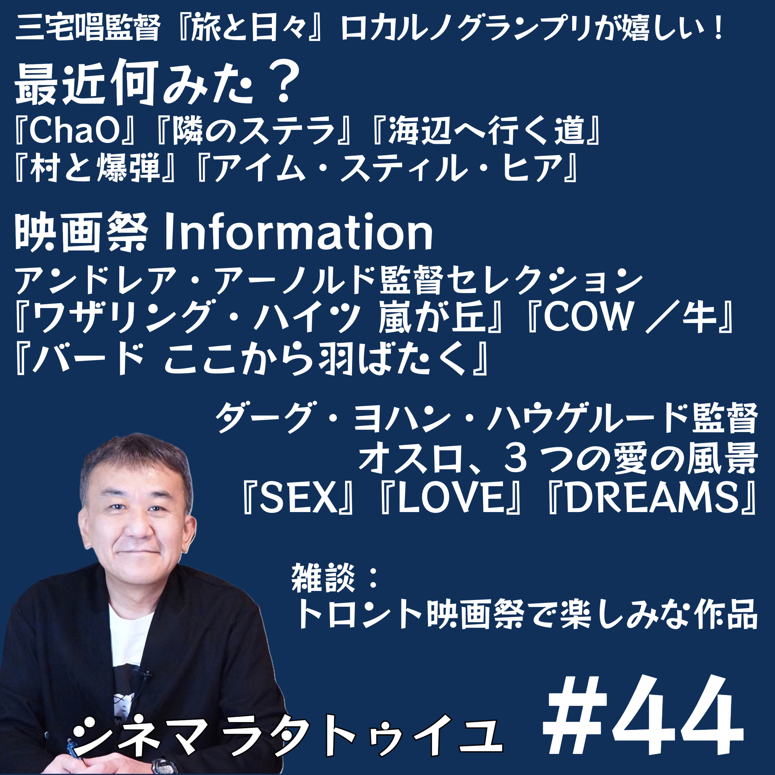 9月上旬公開作品チェックとして『風のマジム』『タンゴの後で』等をチェックし、一挙公開のハウゲルード『SEX』『LOVE』『DREAMS』はどれから見たらいい?との質問に答え、配信入りする作品をチェックしながら、WOWOWの貴重な放送予定にも触れていきます。メールはこちらからお願いします!https://forms.gle/AixjXzRRYNSYPW5N8