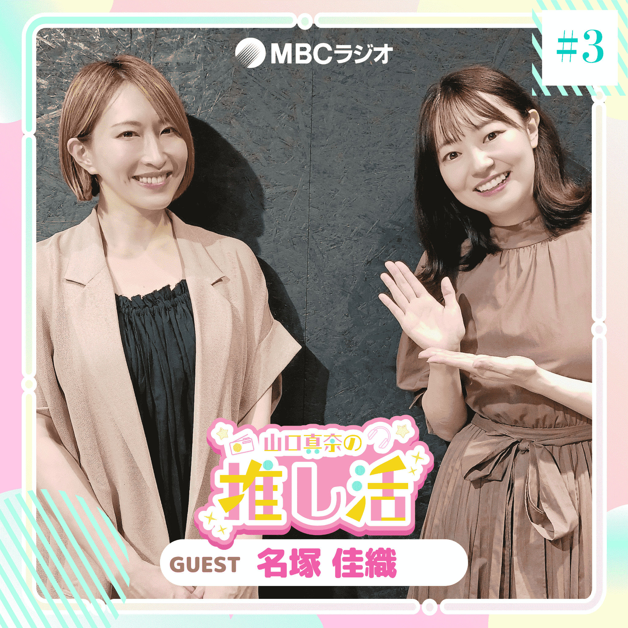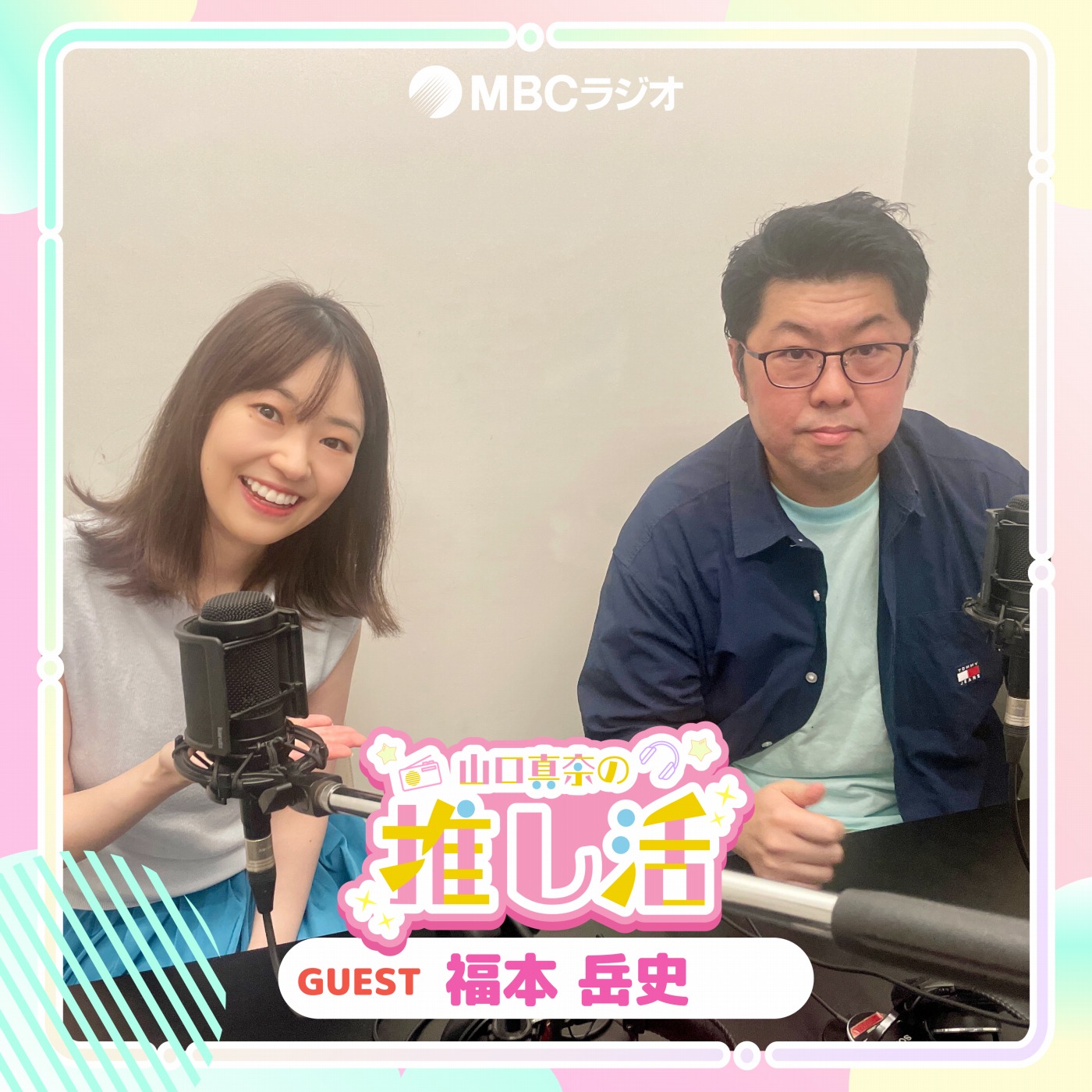 この番組は、アニメやゲームが大好きな MC山口真奈が自身の「推し」、声優や配信者、アニメやゲーム業界に関わる方々(原作者、イラストレーター、監督など)を、ゲストに迎え、ファンとして知りたいことや、ゲストの推しポイントについて、インタビュー形式で楽しくリスナーにお伝えするトーク番組です。番組MC:山口 真奈(フリーアナウンサー)番組は毎週土曜日16:45~17:00MBCラジオで放送中です。